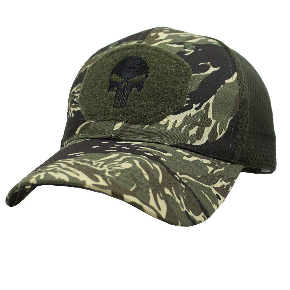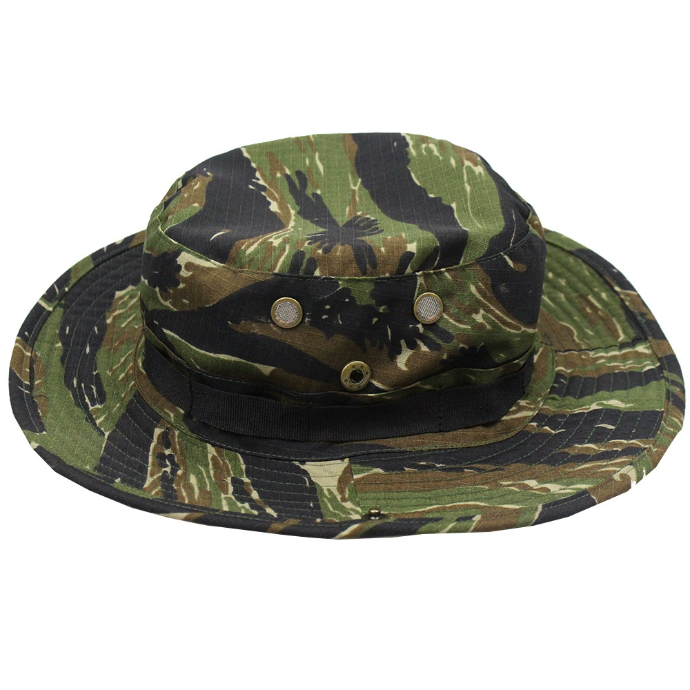 Sombrero de béisbol de camuflaje con patrón de tigre para exteriores, sombrero de pescador de borde redondo, sombrero de sol