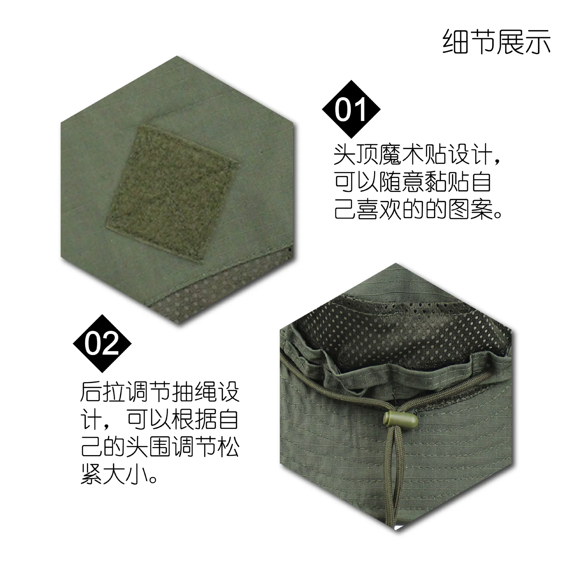 Descripción del producto: Esta versión se basa en el diseño original de la jungla del campo europeo, el tamaño de la gorra es diferente antes y después, la tapa frontal es poco profunda para evitar afectar la línea de visión.El diseño de ala ovalada hace que el sombrero sea más tridimensional.Está más de moda de usar.Diseño de bolsillo para gorra.Tela de malla transpirable