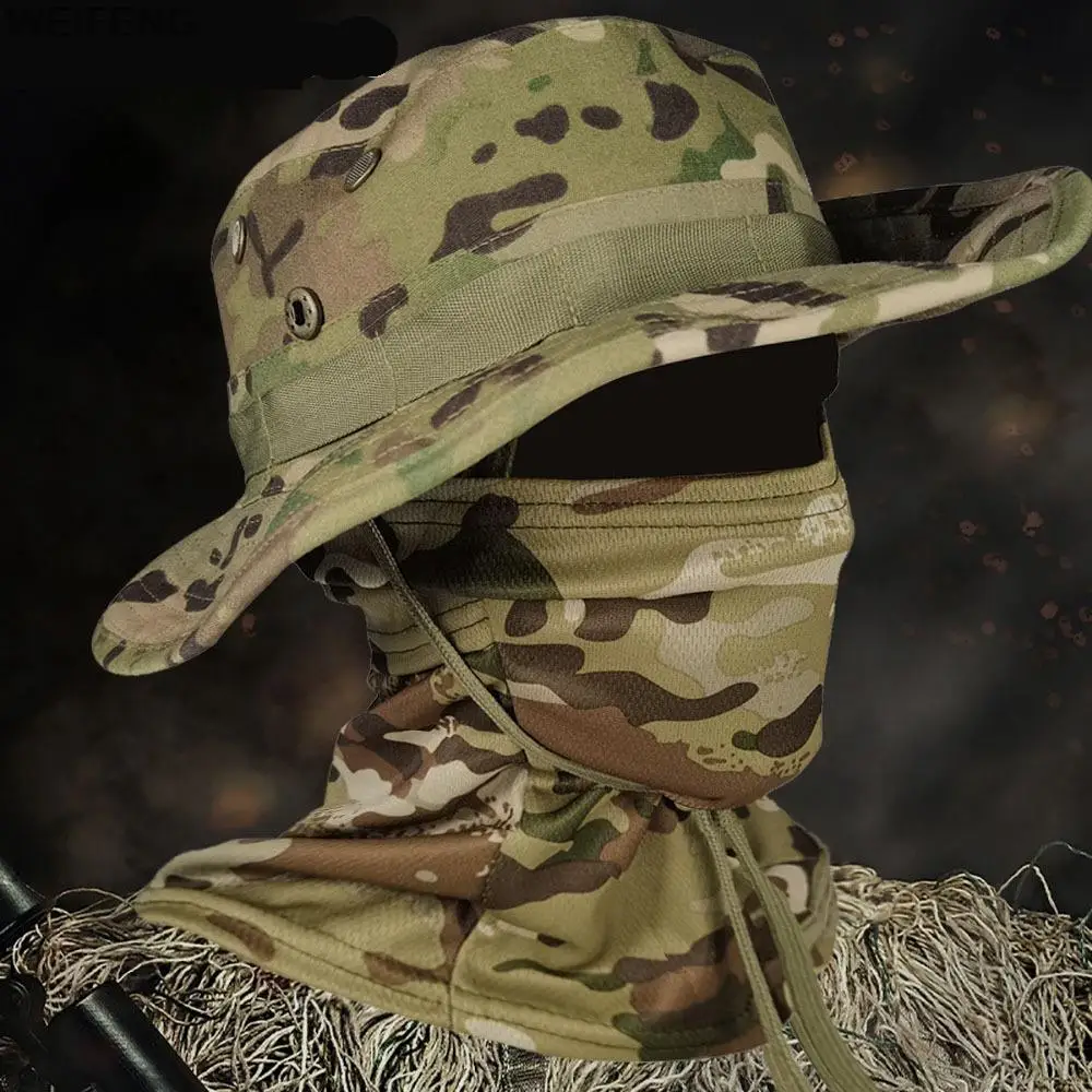 Material:40% POLIÉSTER + 60% algodón tamaño: circunferencia de la cabeza es 56-60cm(L) pico de la gorra: alrededor de 7cm color: camuflaje múltiple el embalaje incluye: 1 x sombrero Boonie/1 x máscara.
