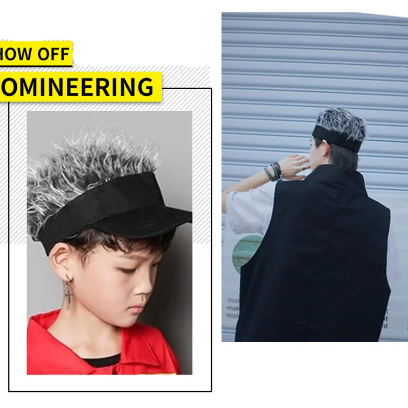 Sombrero de peluca ajustable para hombre, gorra deportiva informal, cubierta de pelo corto, visera novedosa, estilo Retro callejero, visera divertida