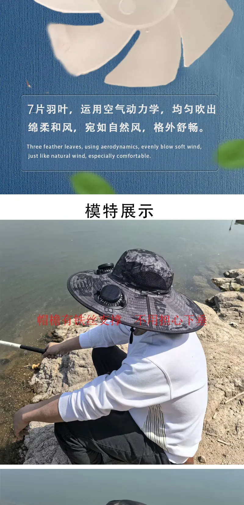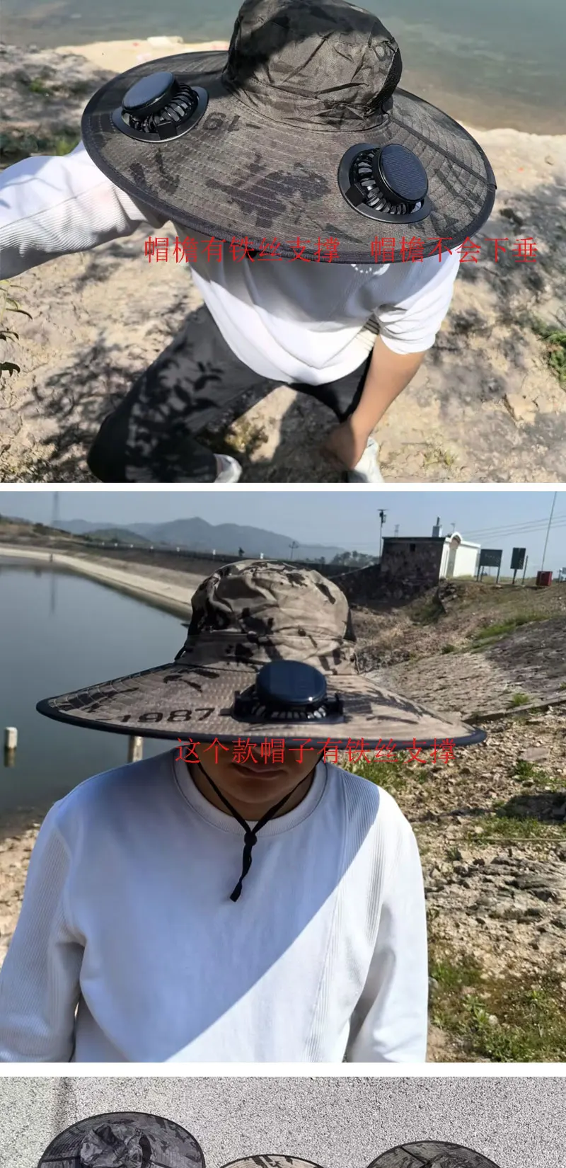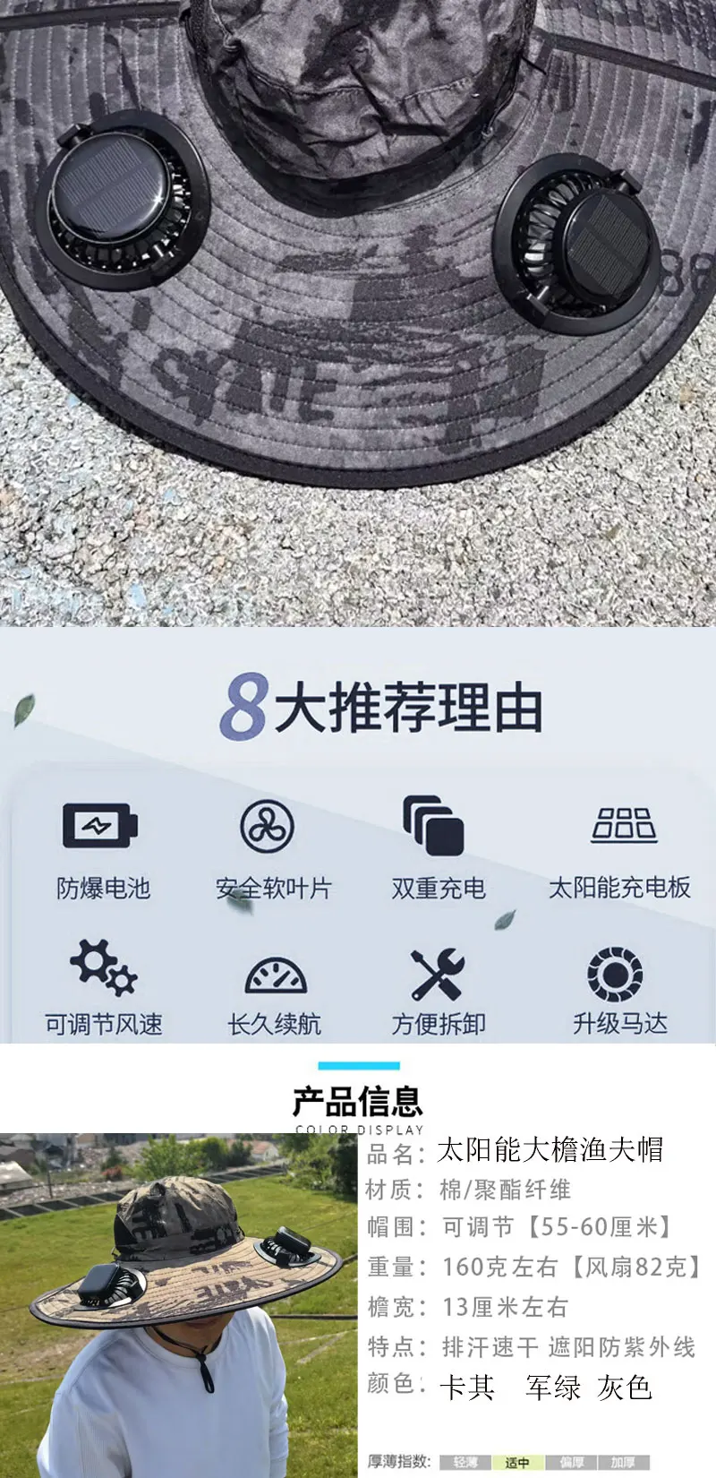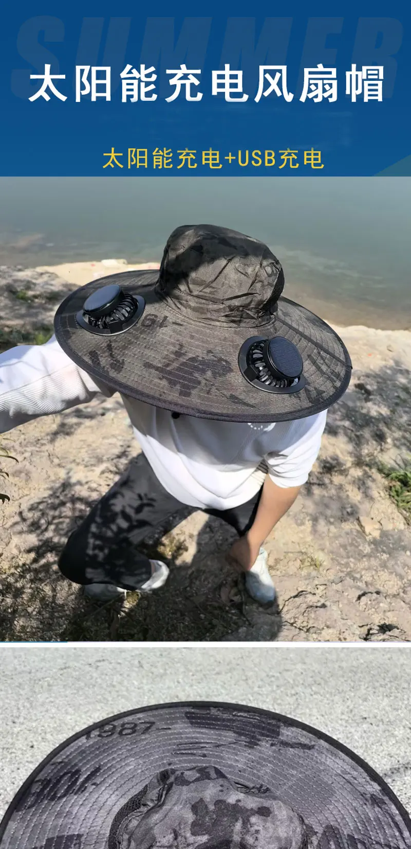 Nombre del producto: Sombrero de pescador con energía solar y ala grande