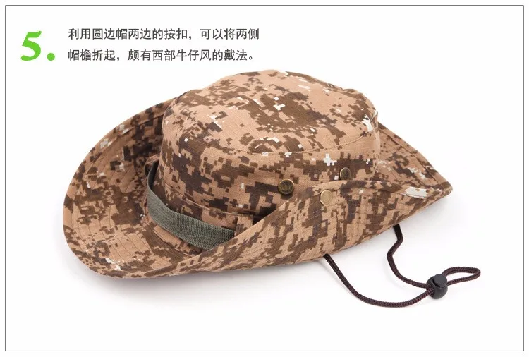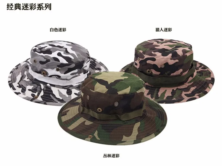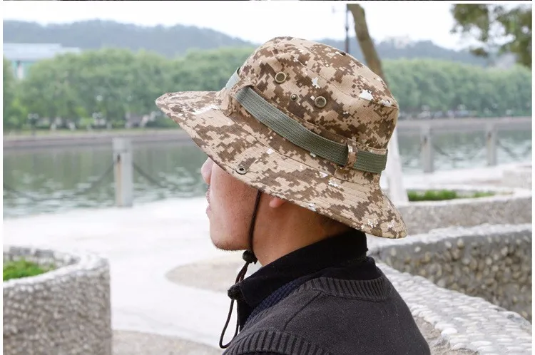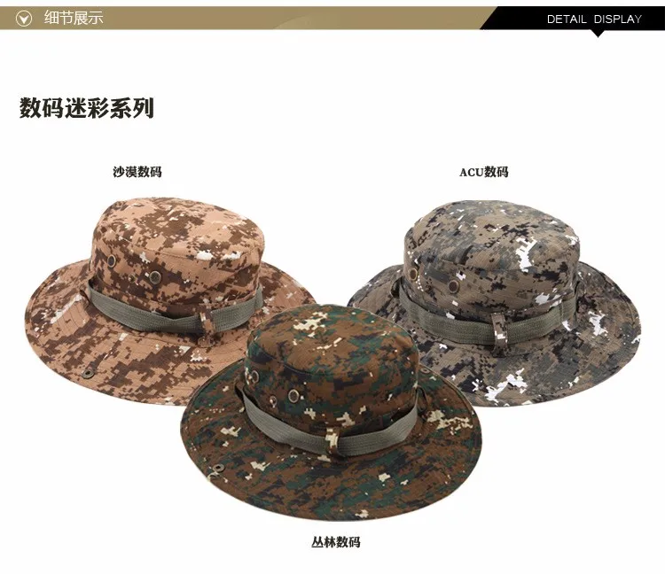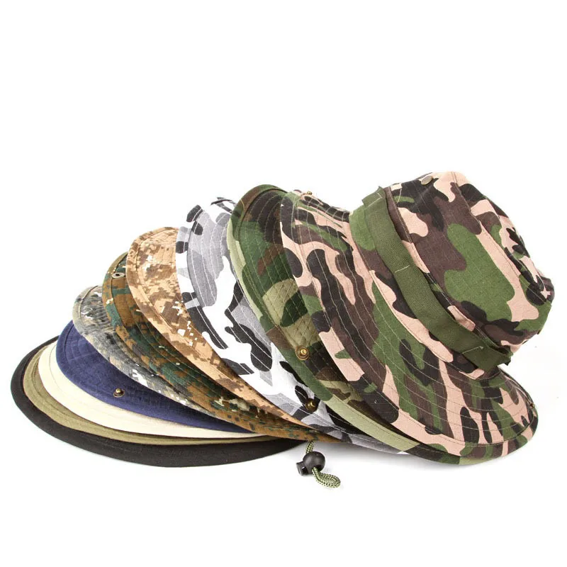 Sombrero redondo de algodón para hombre y mujer, gorra de cubo de camuflaje de la selva, para pesca al aire libre, Camping, montañismo, protector solar, Boonie