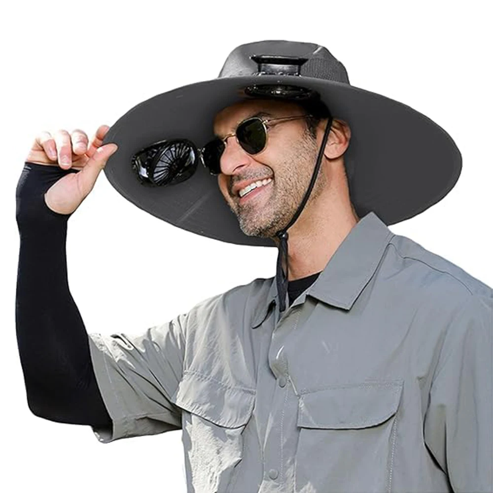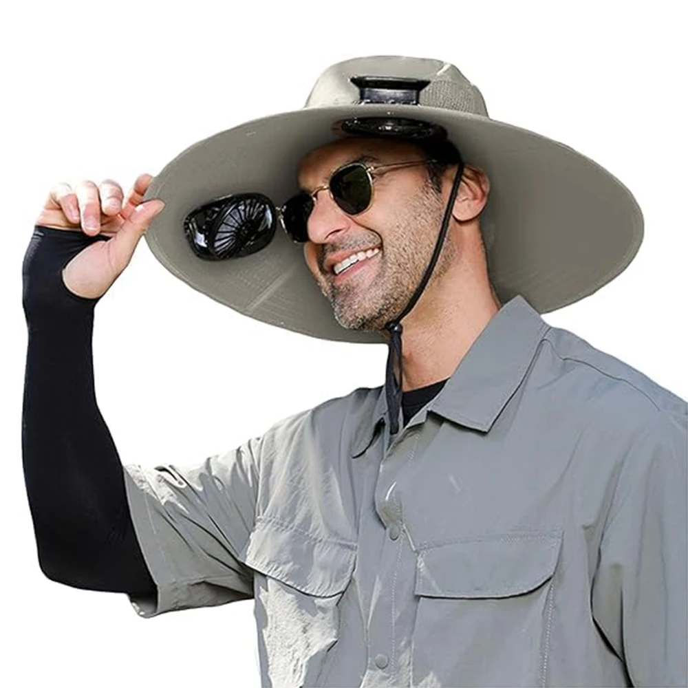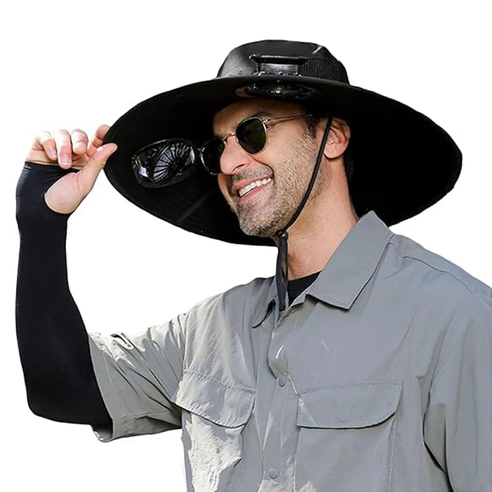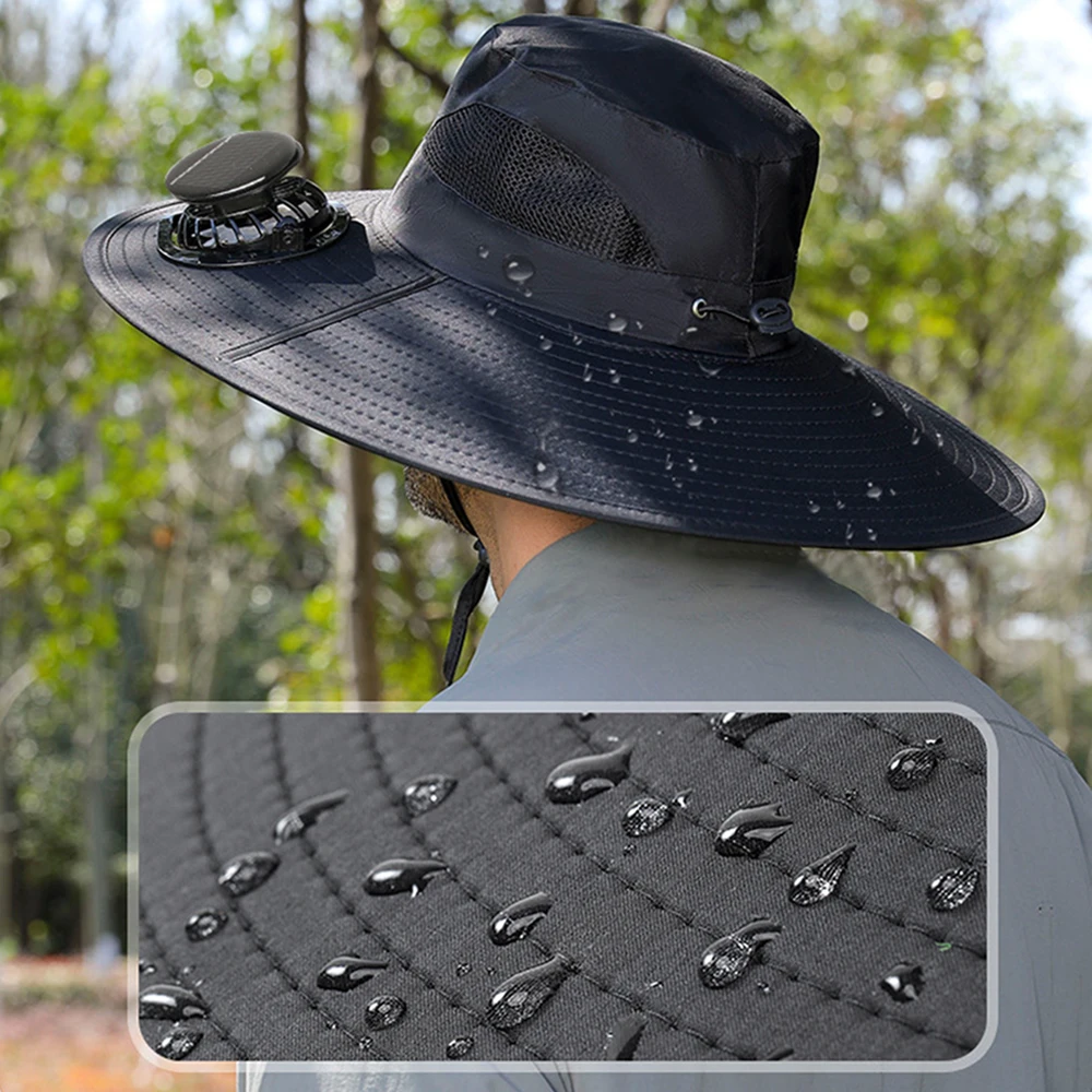 Sombrero para el sol de ala ancha para exteriores con 2 ventiladores solares, sombrero de cubo para el sol, gorra de pesca para hombres y mujeres, sombrero de cubo UPF 50+, gorra para caza, Camping y pesca