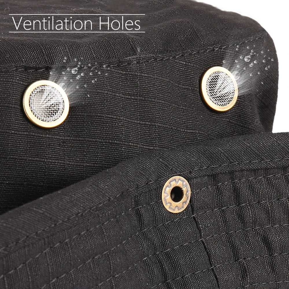 Hay cuatro orificios de ventilación en ambos lados del sombrero, respire suavemente y libremente, no se sentirá bochornoso en verano.