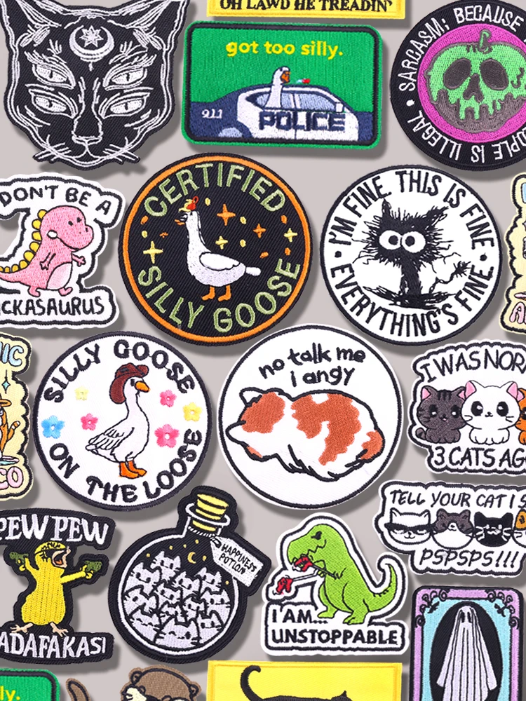Parches bordados para bolsos de sombreros, parche divertido de dinosaurio con diseño de gato y pato, parches termoadhesivos para ropa, insignias de costura