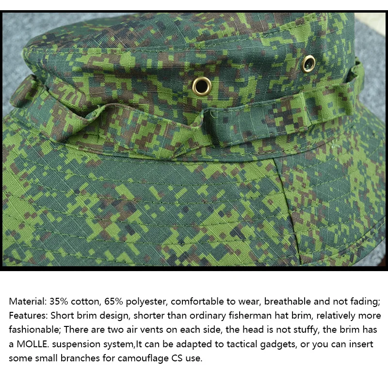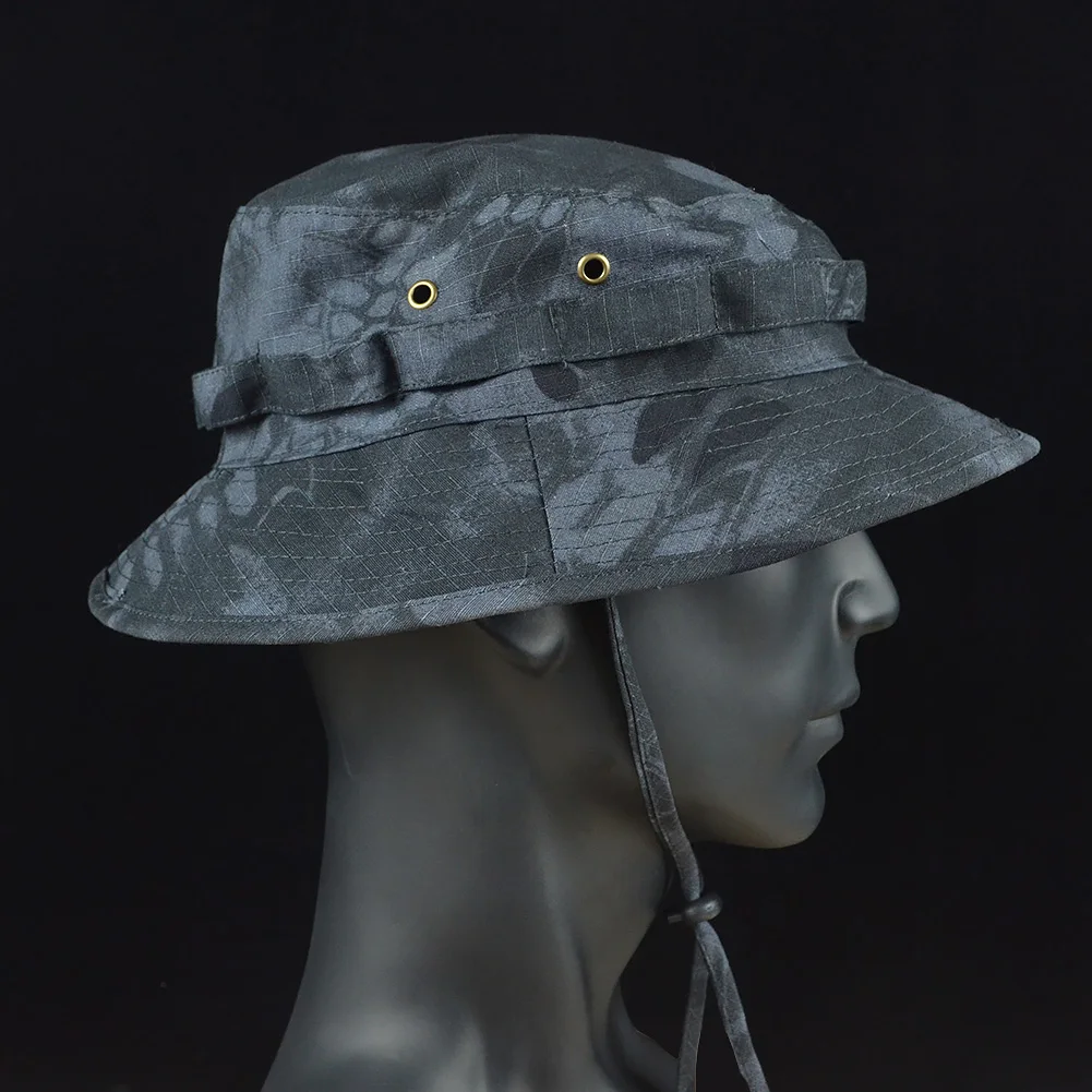 Sombreros Boonie tácticos militares de verano, gorra de camuflaje al aire libre, caza, sol, pesca, pescador ajustable, francotirador, sombreros de cubo Ghillie