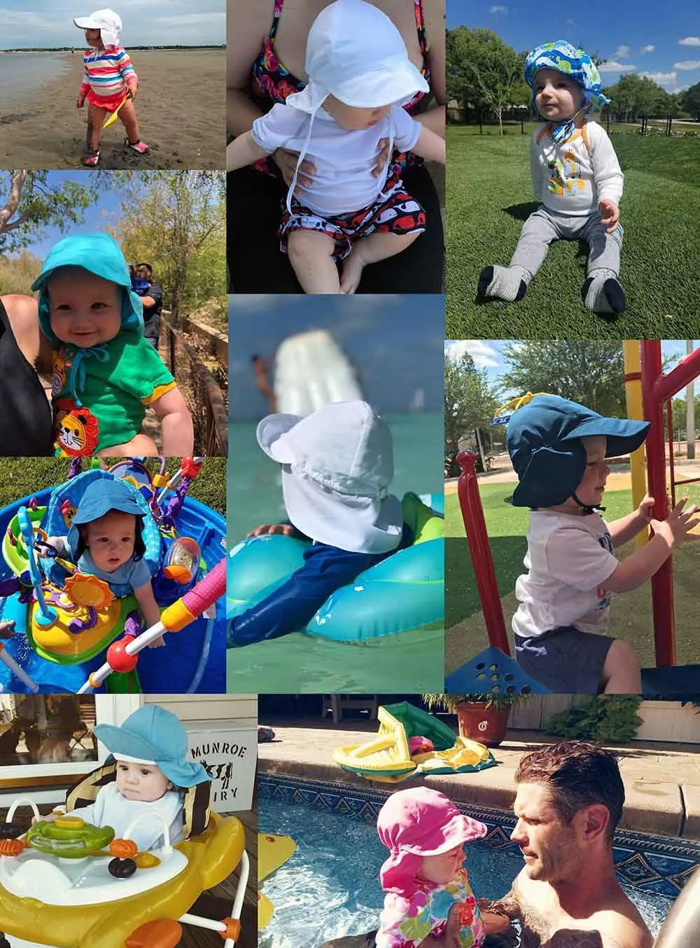 Circunferencia del sombrero:S: aproximadamente 44-48 CM, adecuado para niños de alrededor de 3-18 mesesM: aproximadamente 48-54CM, adecuado para niños de alrededor de 2 a 5 añosMaterial: tela de malla transpirable de secado rápidoFunción: protector solar, anti-UV, protege la piel del bebé.