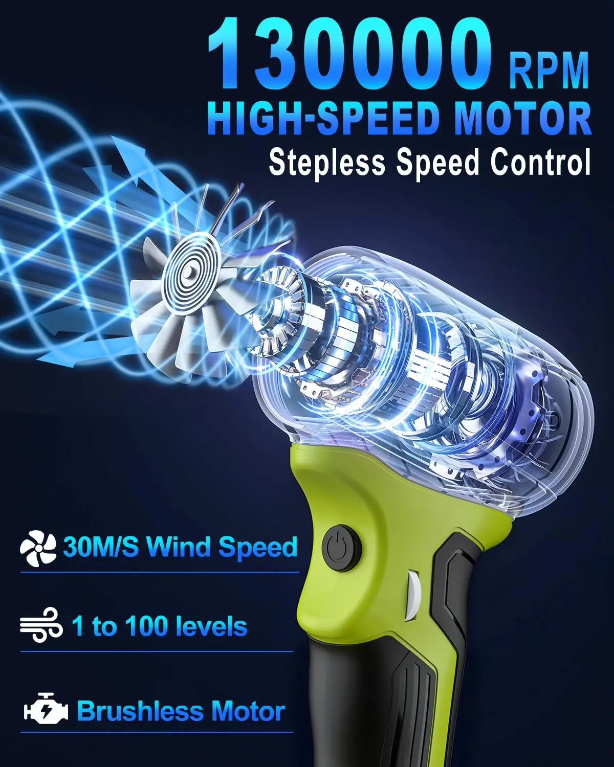 【Actualice el soplador de chorro de mayor velocidad de 210 W】El ventilador de súper chorro es compacto, liviano y con velocidad ajustable engranajes giratorios.El flujo de aire de salida de velocidad máxima es de 30 m/s, gira hasta 130.000 RPM.Seque rápidamente la superficie, adecuada para cualquier necesidad de su.