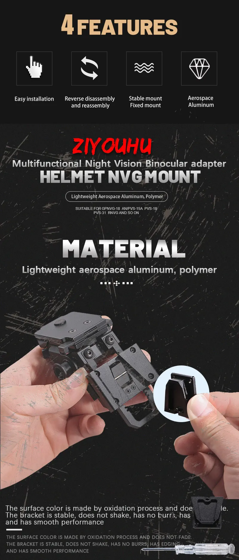 Soporte adaptador de puente de cola de milano NVG para casco multifuncional para NVG10/NVG-18AN /GPNVG18/PVS15A/PVS18/PVS31 RNVG