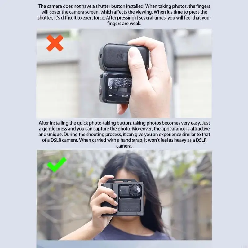 Adecuado para caminatas, exploración urbana o eventos llenos de acción con su empuñadura de cámara resistente a la intemperie.