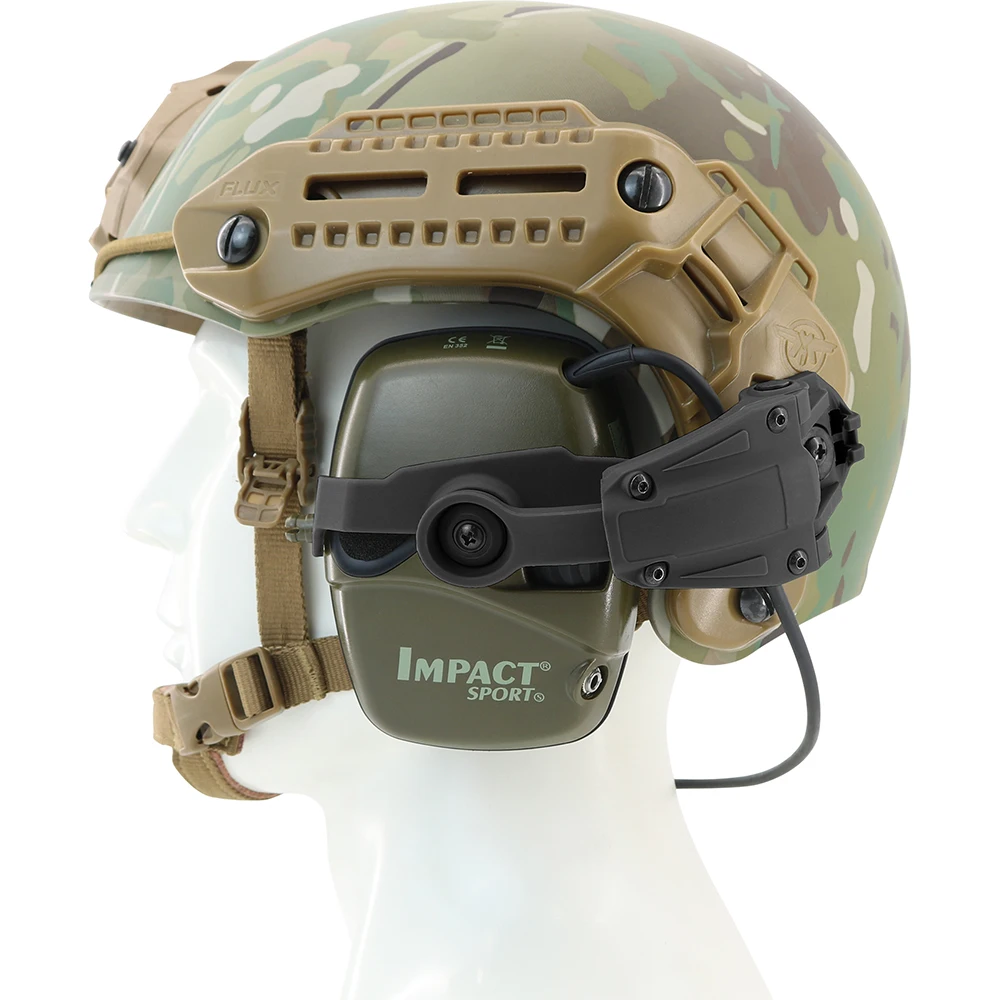 Este accesorio adaptador de riel MLOK para casco es compatible con los auriculares tácticos Howard Leight Impact Sports.