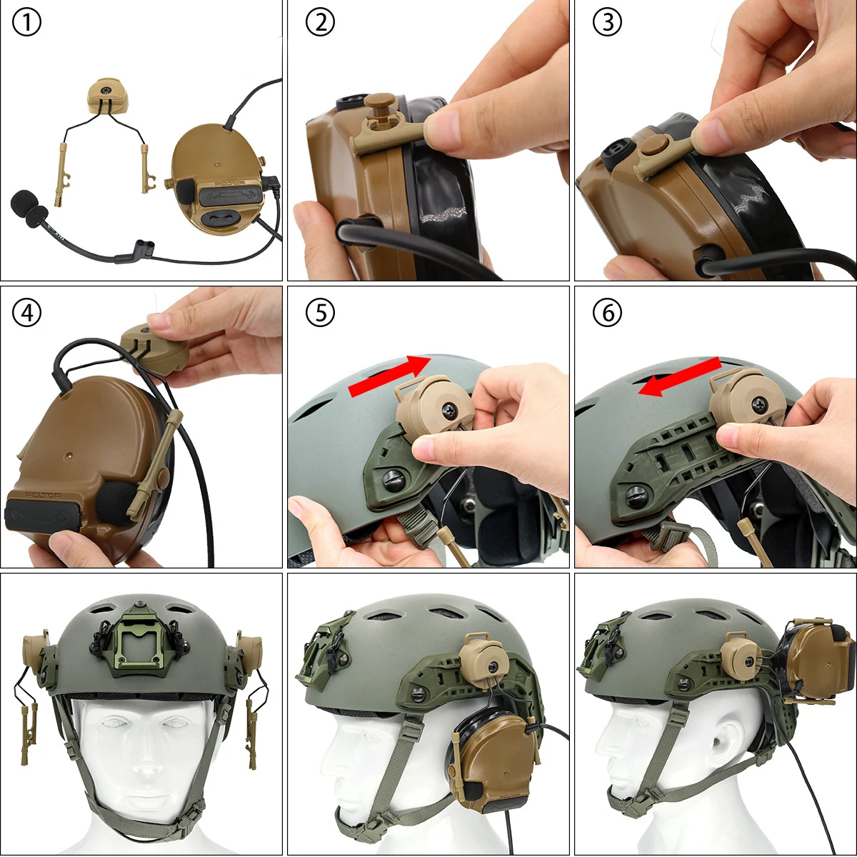 Descripción: La nueva versión es un accesorio conectado directamente a la gama completa de cascos rápidos, cascos de la serie ACH, cascos MICH y auriculares para walkie-talkies peltor comtac.