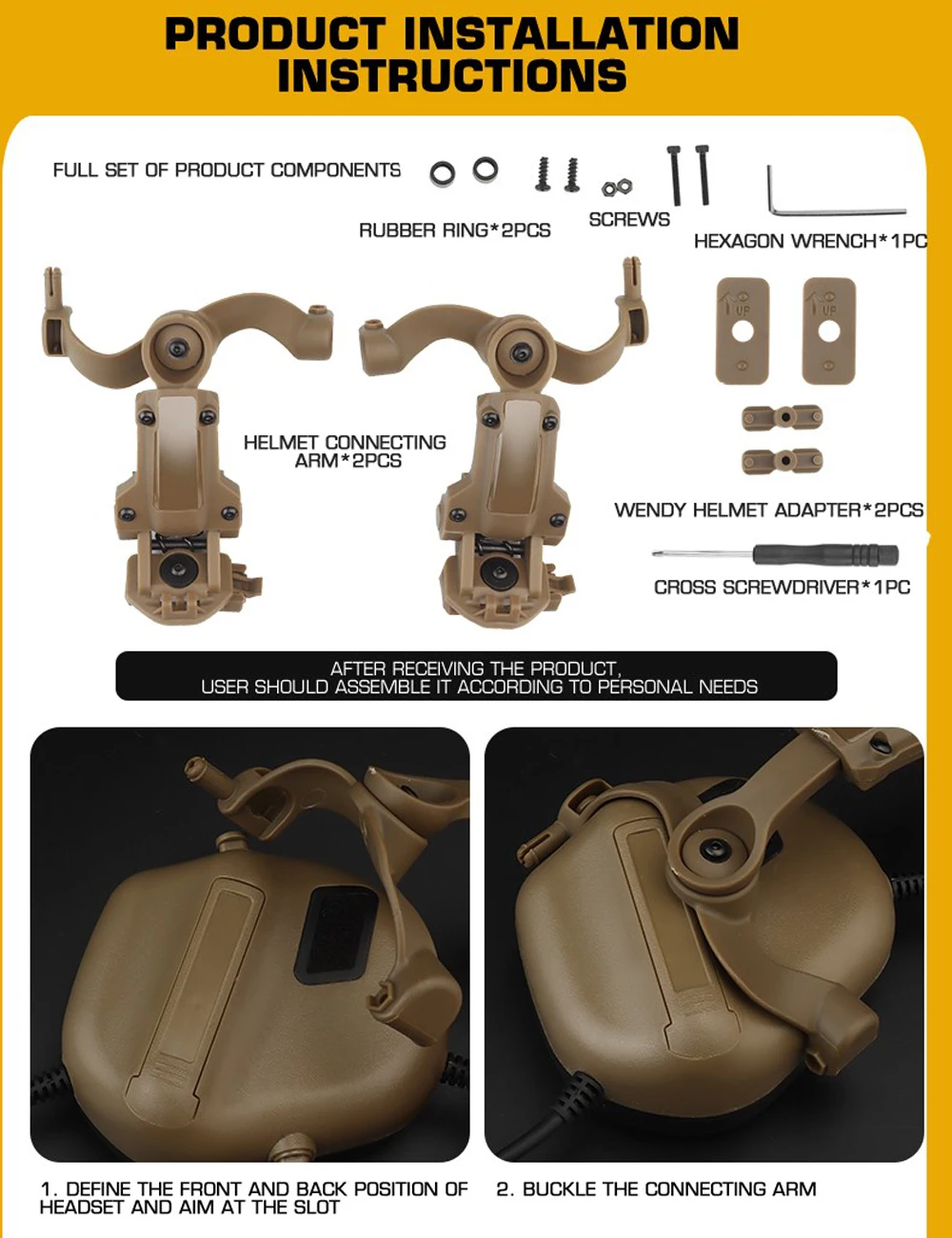 Soporte para auriculares tácticos GEN 5, soporte para auriculares con cancelación de ruido para caza y tiro, para casco de arco FAST OPS Wendy M-LOK