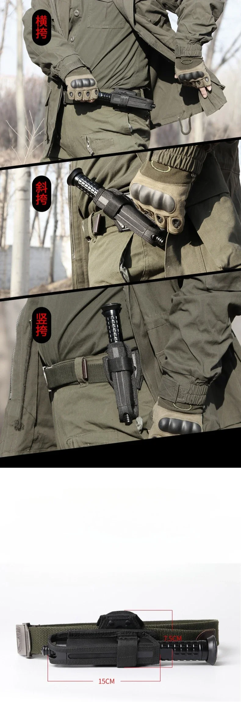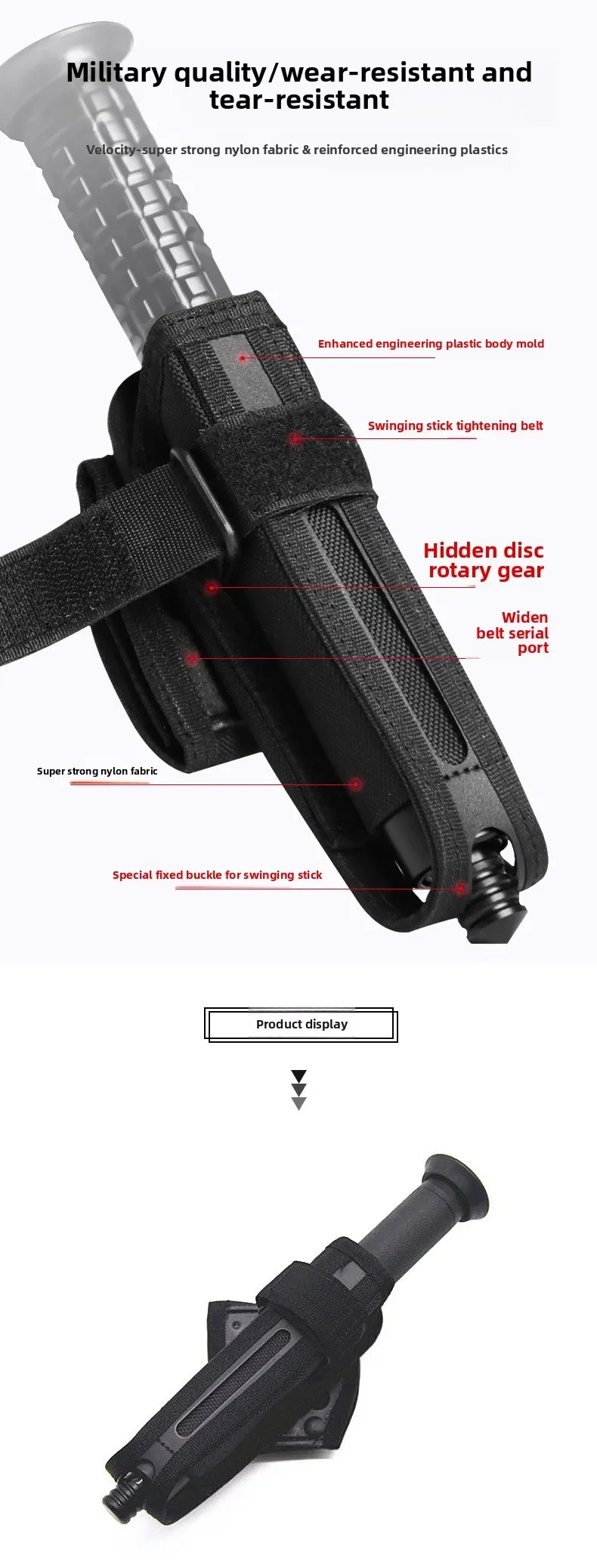 This item is a useful tool for baton, made of high quality360 degree rotationConvenient clamping buckleIt enables a very quick drawing of the baton, suitable for different usage habitsMaterial: Plastic+ NylonColor: BlackSize: 15 * 7.5cmWeight: 100gApplication: Baton Holder/Stick HolsterPackage: 1 x Baton Holder