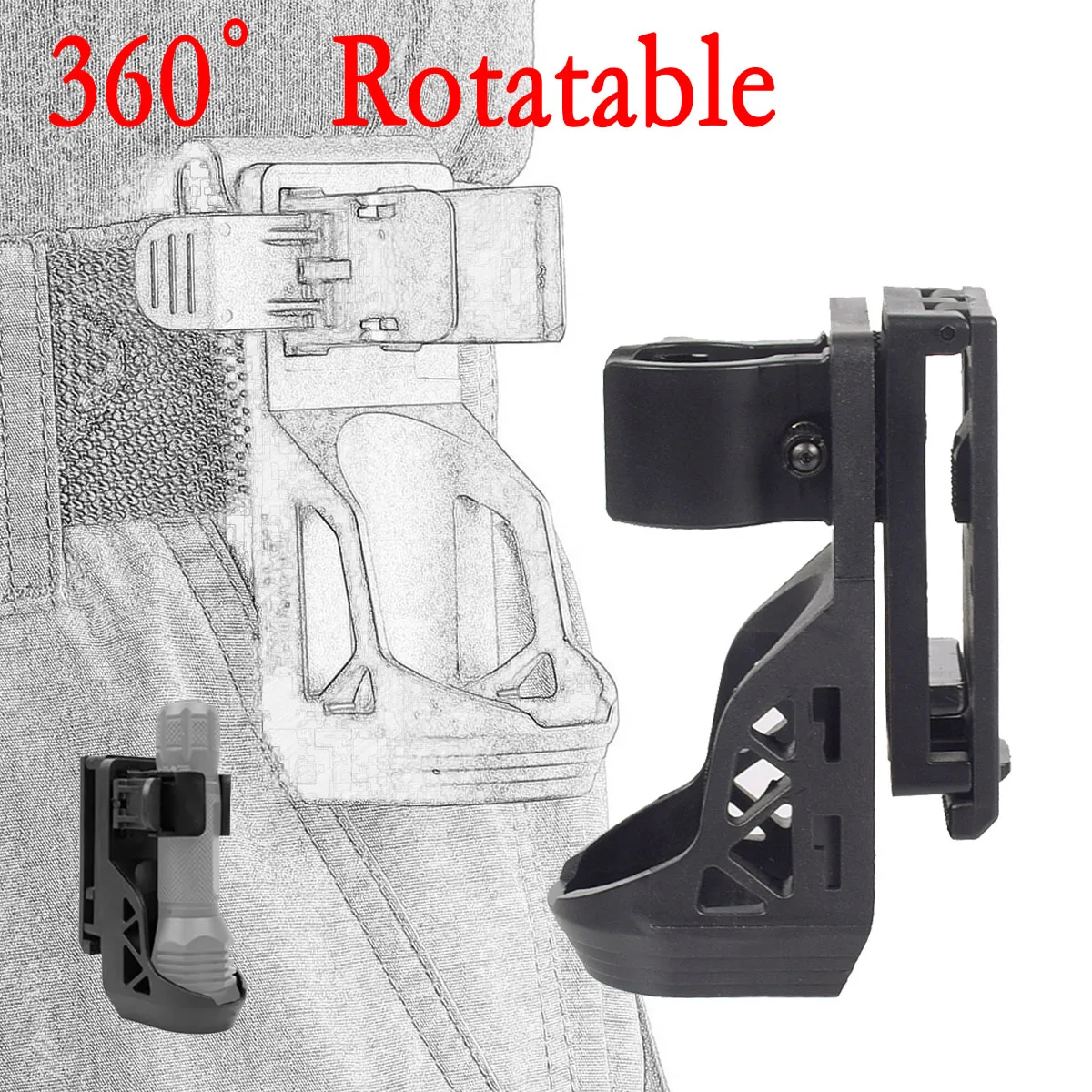 【Funda de linterna táctica】 Para una fácil operación con una sola mano, un simple interruptor de paleta bloquea la linterna en su lugar o la desbloquea.