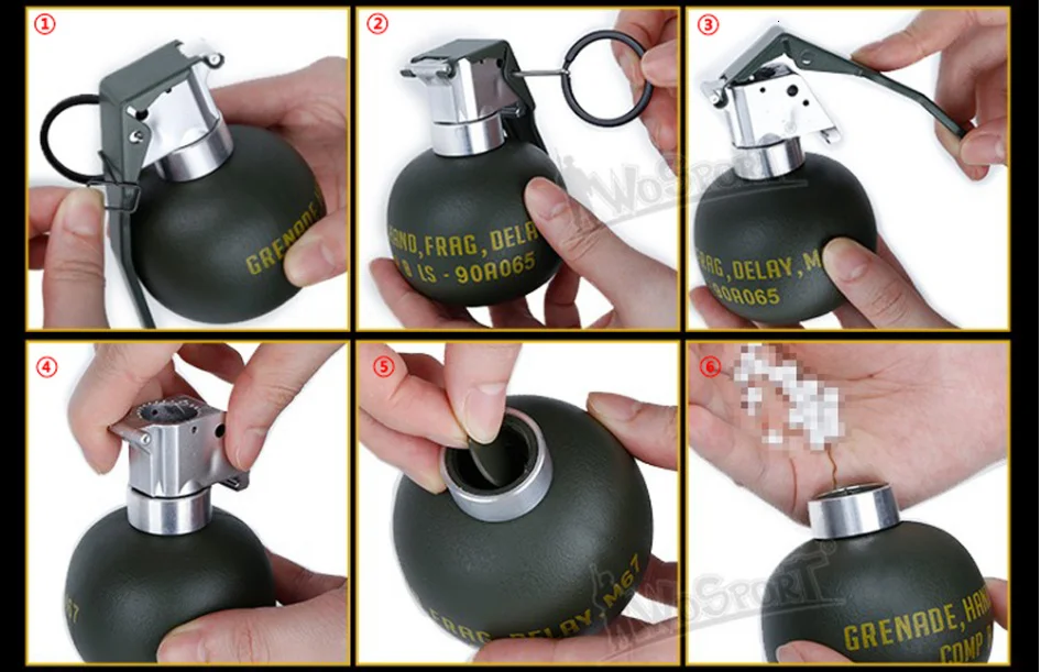 Instrucciones de uso: ① Clip DE SEGURO abierto ② Saca el PIN del seguro ③ Parachoques abierto ④ Desenrosque la parte de la cabeza ⑤ Retire la Junta ⑥ Llene con el objeto.