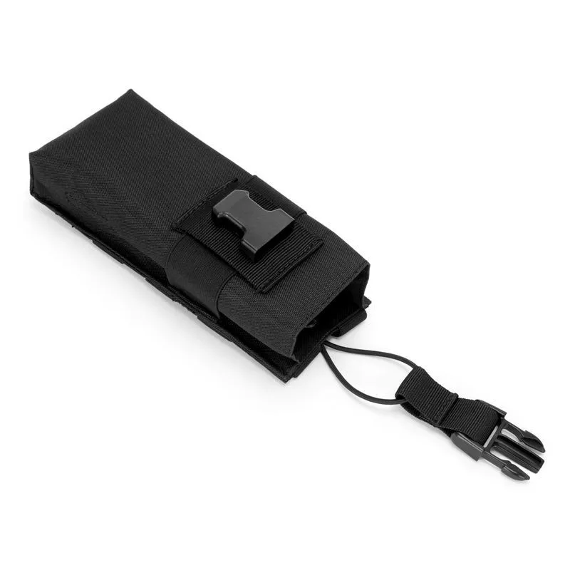 La bolsa para walkie-talkie tiene un cordón de paracaídas de nailon con hebilla para asegurar el walkie-talkie y la radio en la bolsa para que no se caiga del suelo al correr.