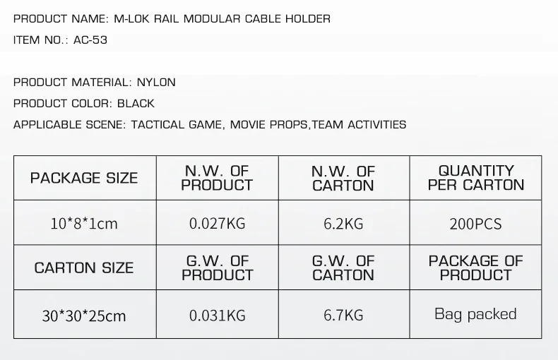 Soporte de Cable m-lok de nailon, 6 piezas, retenedor Modular, interruptor de linterna, abrazadera de Cable para M300, M600, PEQ, accesorios de luz para armas