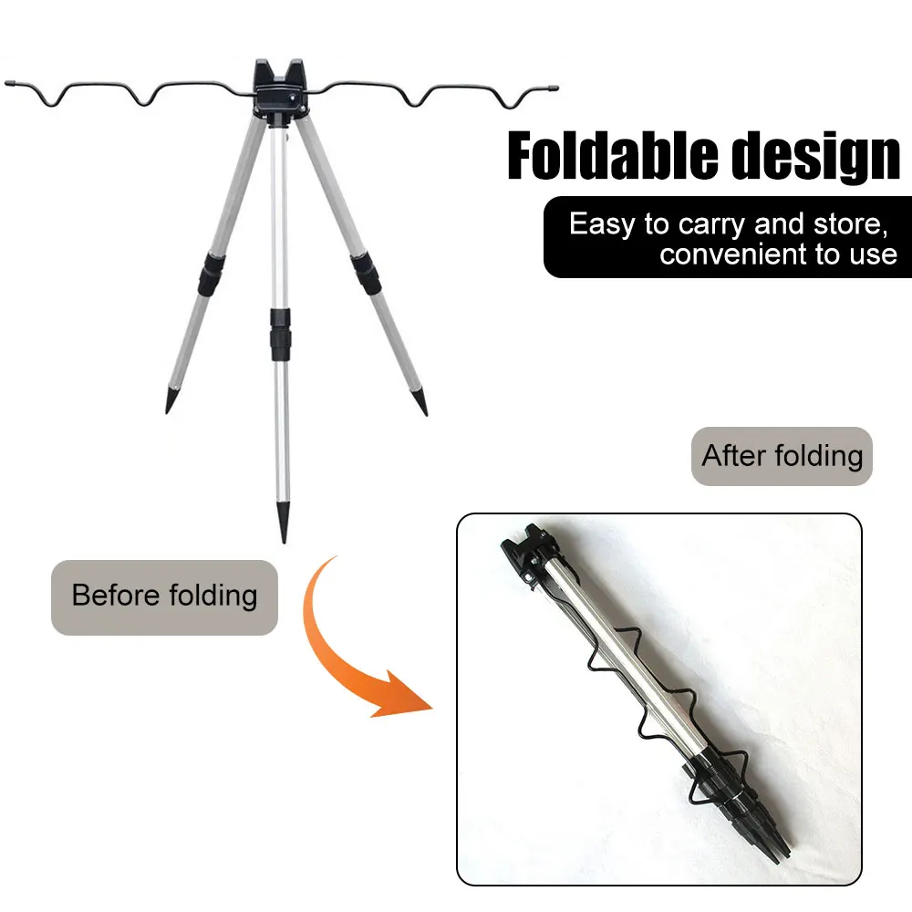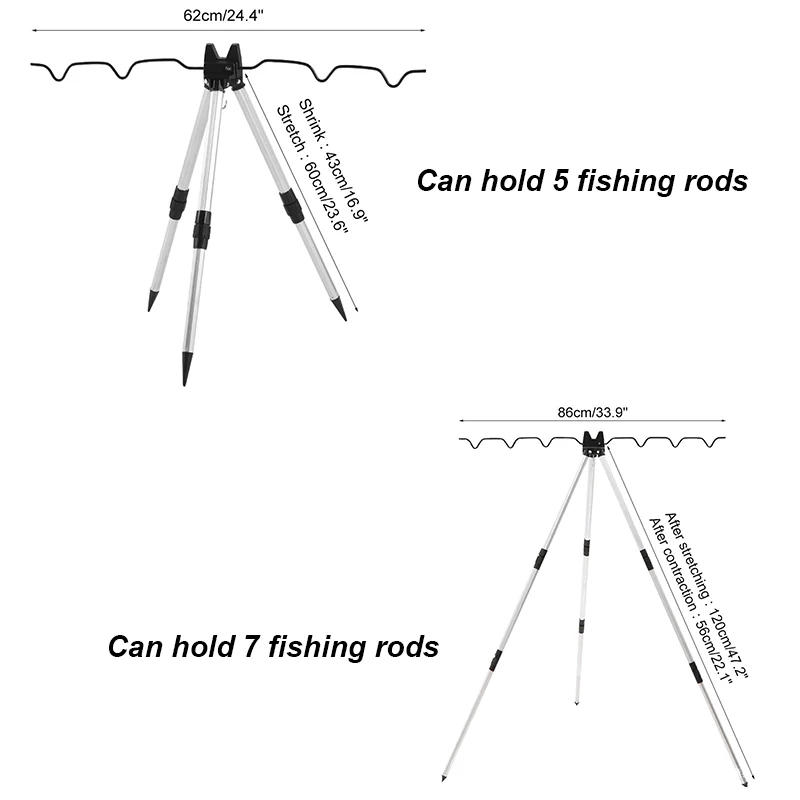 4. 【Plegable】 El soporte para caña de pescar se puede estirar y contraer, los soportes para caña de pescar para el suelo son cómodos de transportar y almacenar.