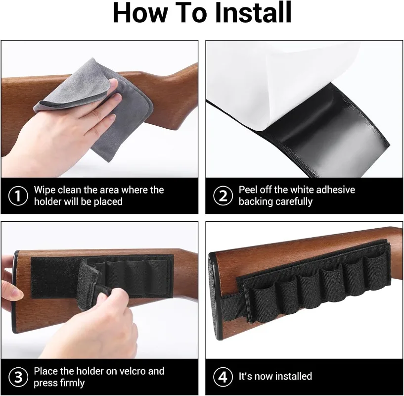 The holder comes with sticky back loop for your shotgun’s receiver to place the shell holder on the side of the gun or butt stock.