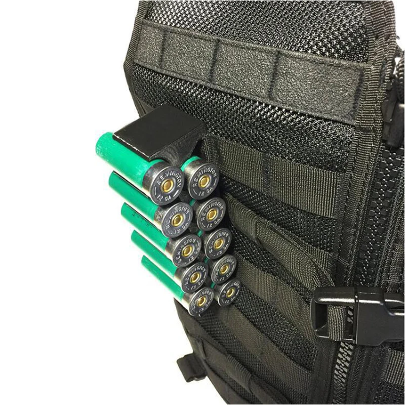Tactical 12 Gauge Shell Holder 10 Rounds 12GA Shotgun Ammo Carrier Storage Rack with Clip for Hunting Shooting Belt Molle Vest