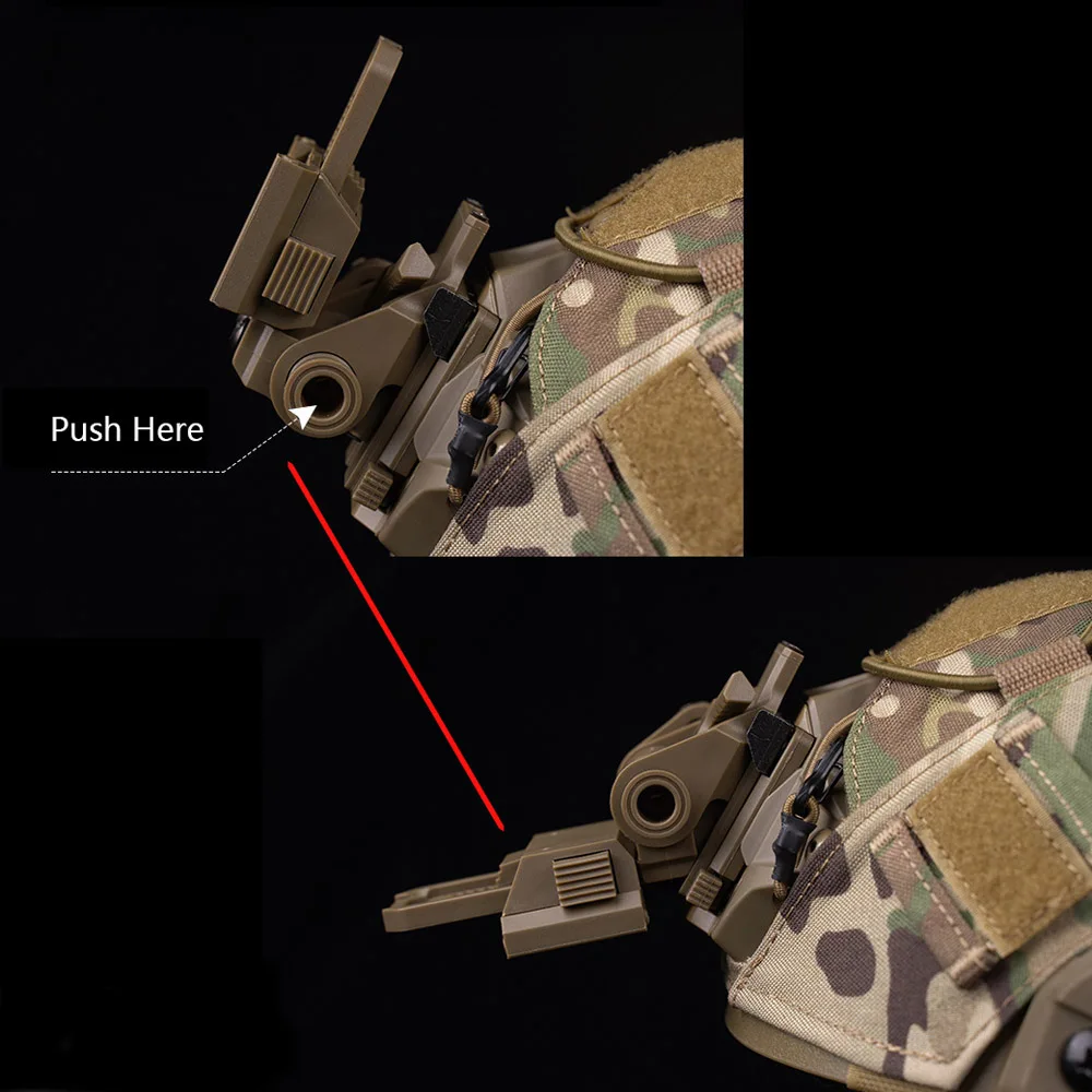 El primer modo permite que el marco de montaje "se separe" de la base en condiciones de tensión, como atascarse durante la cuerda rápida o golpear un objeto duro al entrar o salir de un vehículo o edificio.Con esta función de separación, se pueden minimizar o evitar lesiones graves en el cuello y daños al equipo.