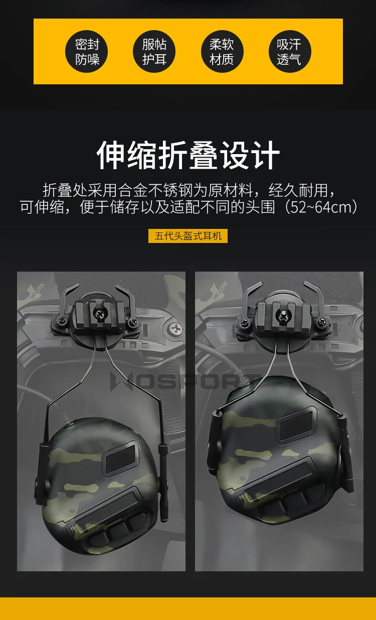 Producto: Tipo de casco, versión sin cancelación de ruidoMaterial: espuma acústica + ABSRiel ajustado: Riel para casco de 19-21 mm de ajuste completoEmbalaje: Auricular * 1Necesito saber: este producto debe usarse con PTT