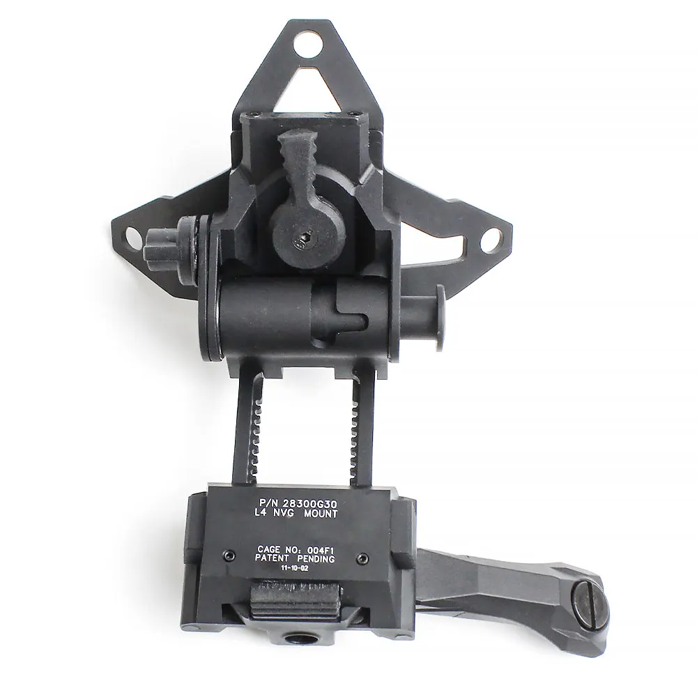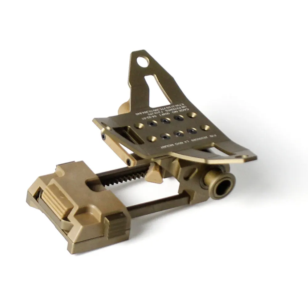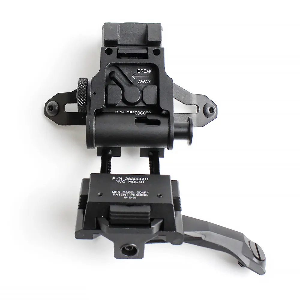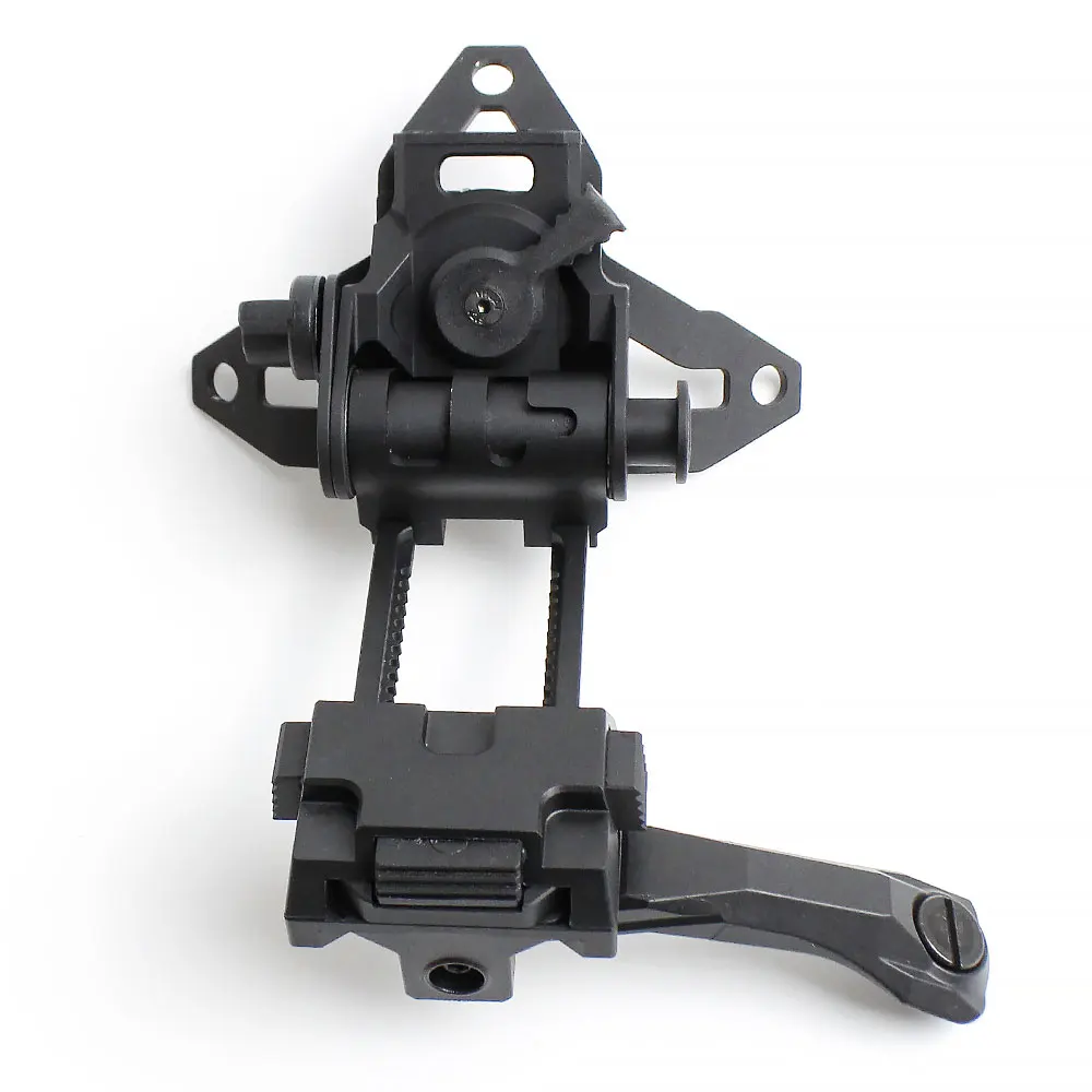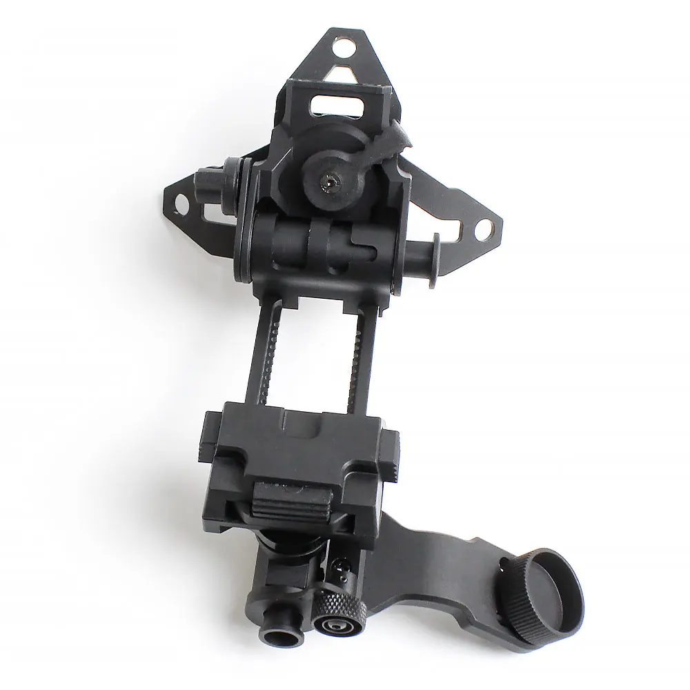 1. Este soporte para casco bloquea de forma segura el NVG en cualquier casco perforado con una configuración estándar de tres agujeros.