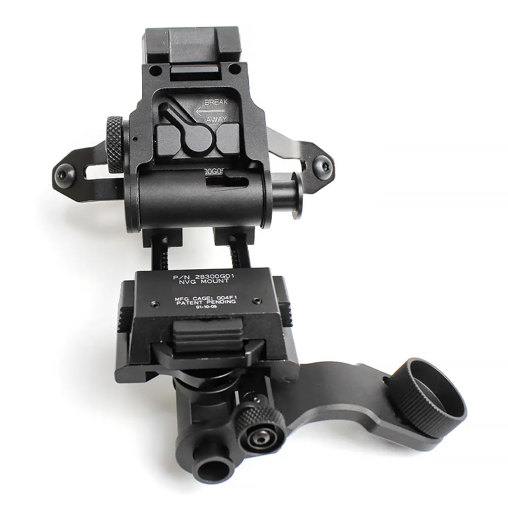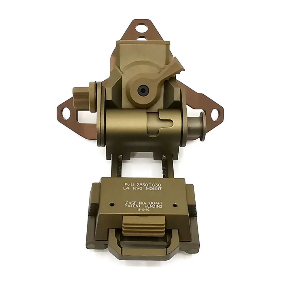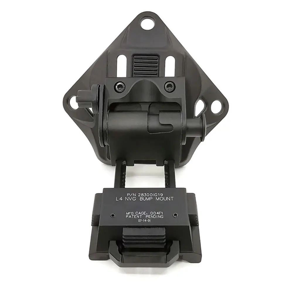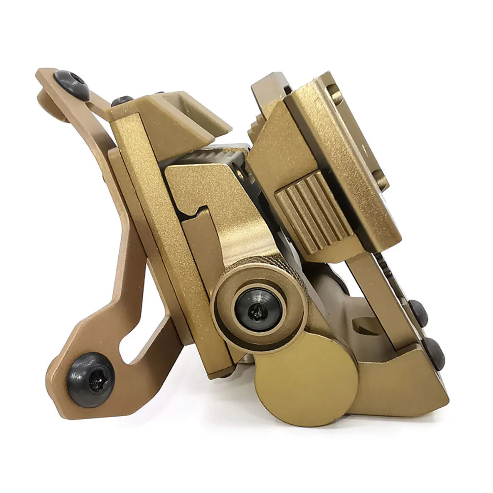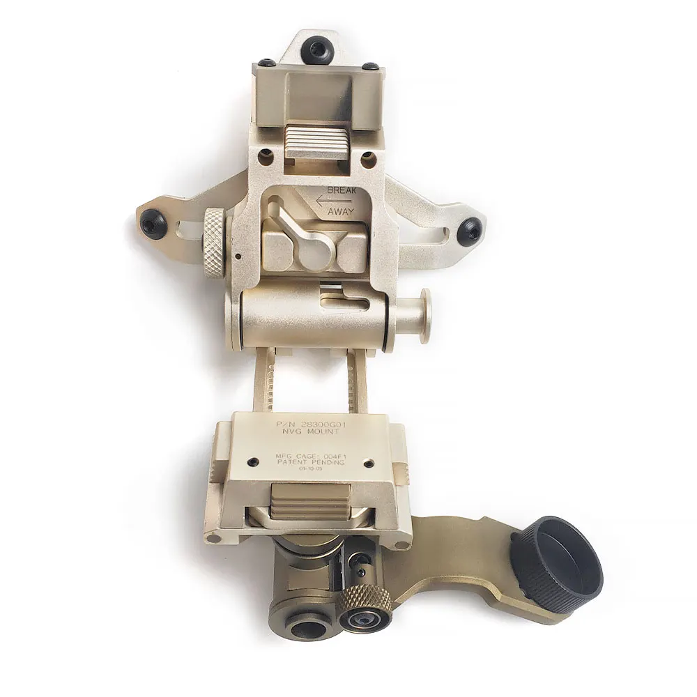 1. Este soporte para casco bloquea de forma segura el NVG en cualquier casco perforado con una configuración estándar de tres agujeros.