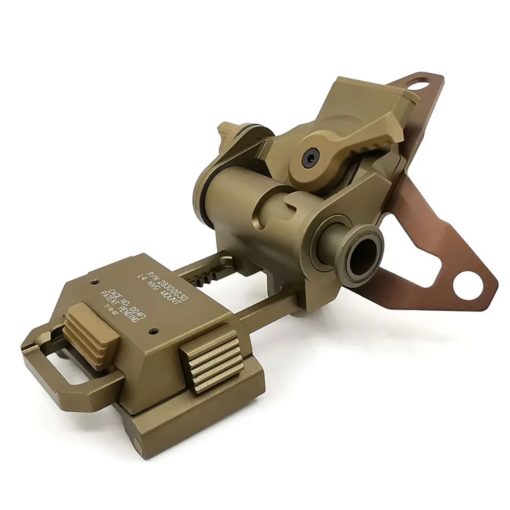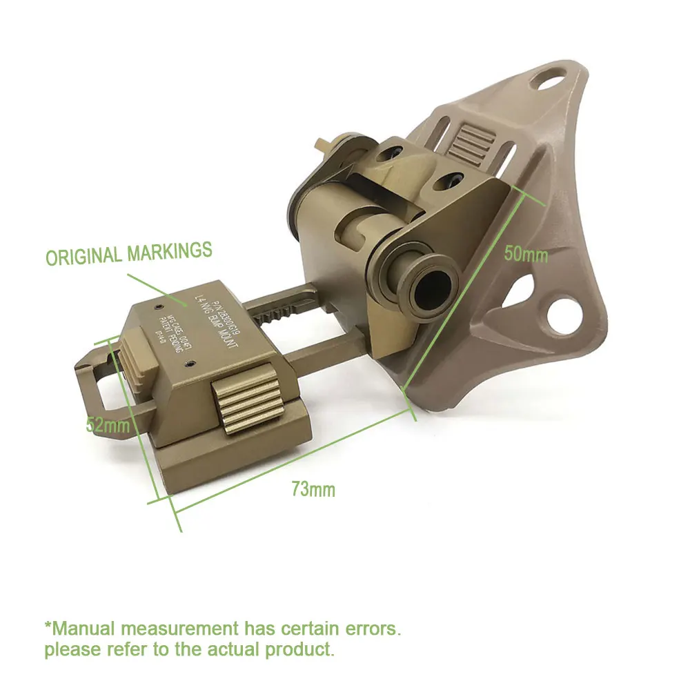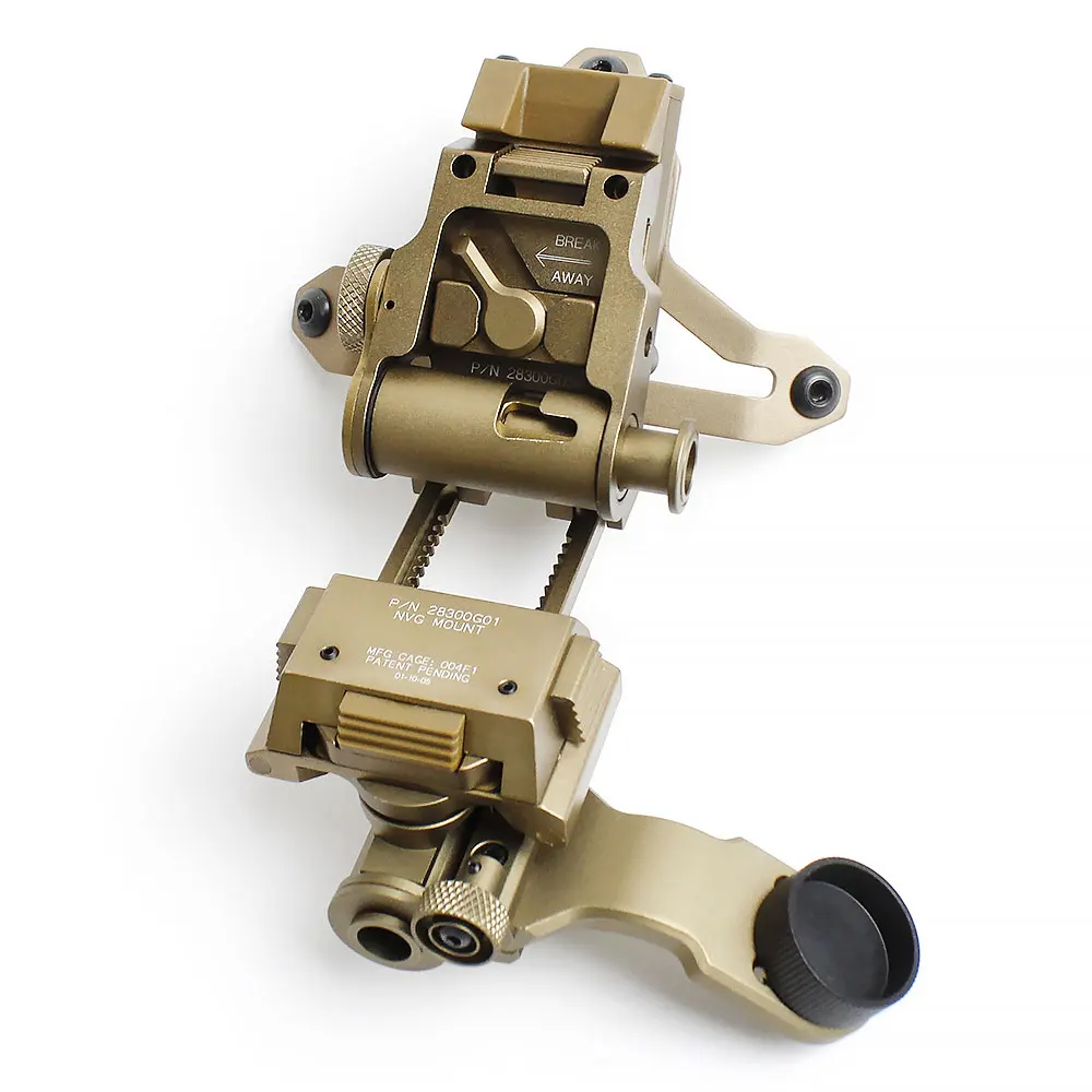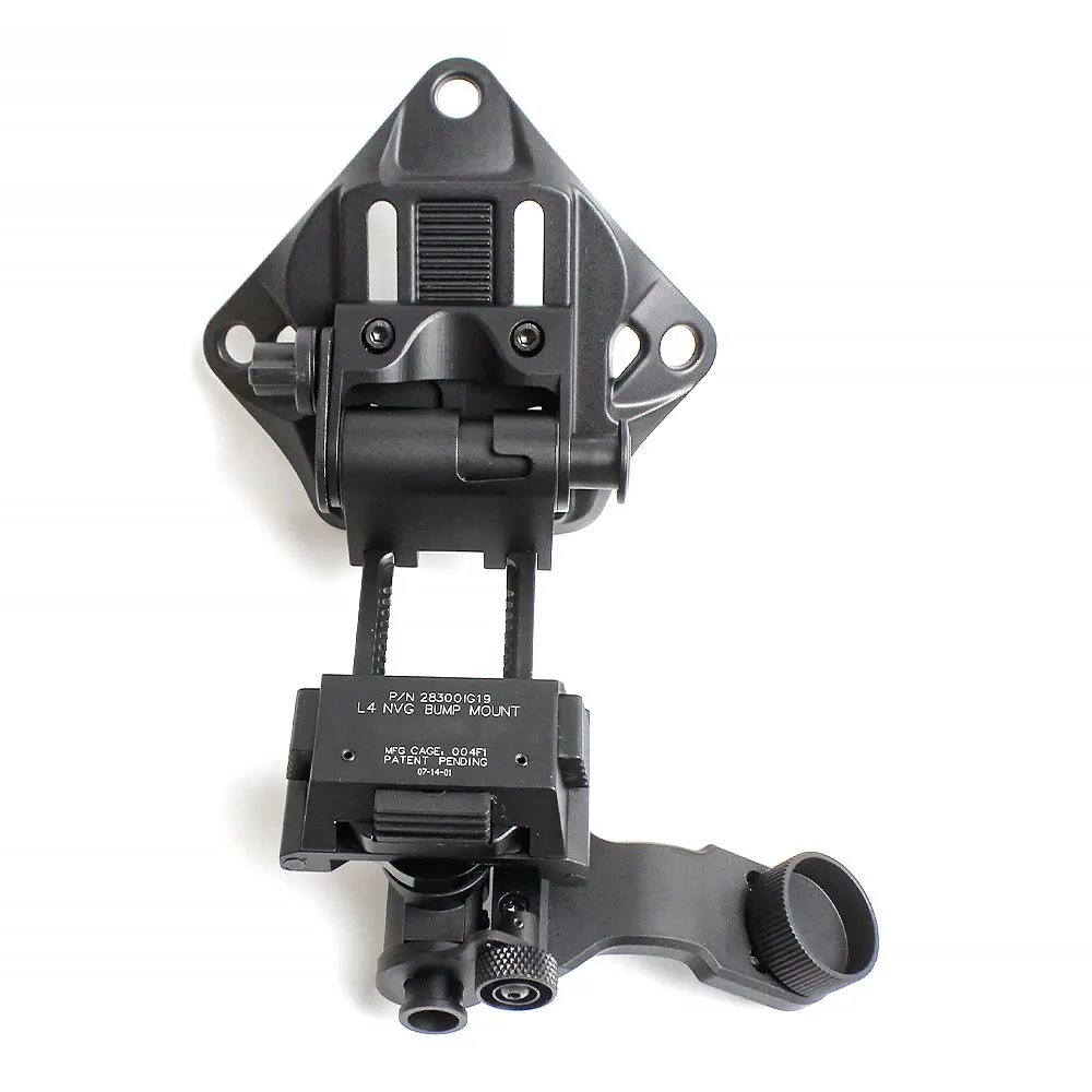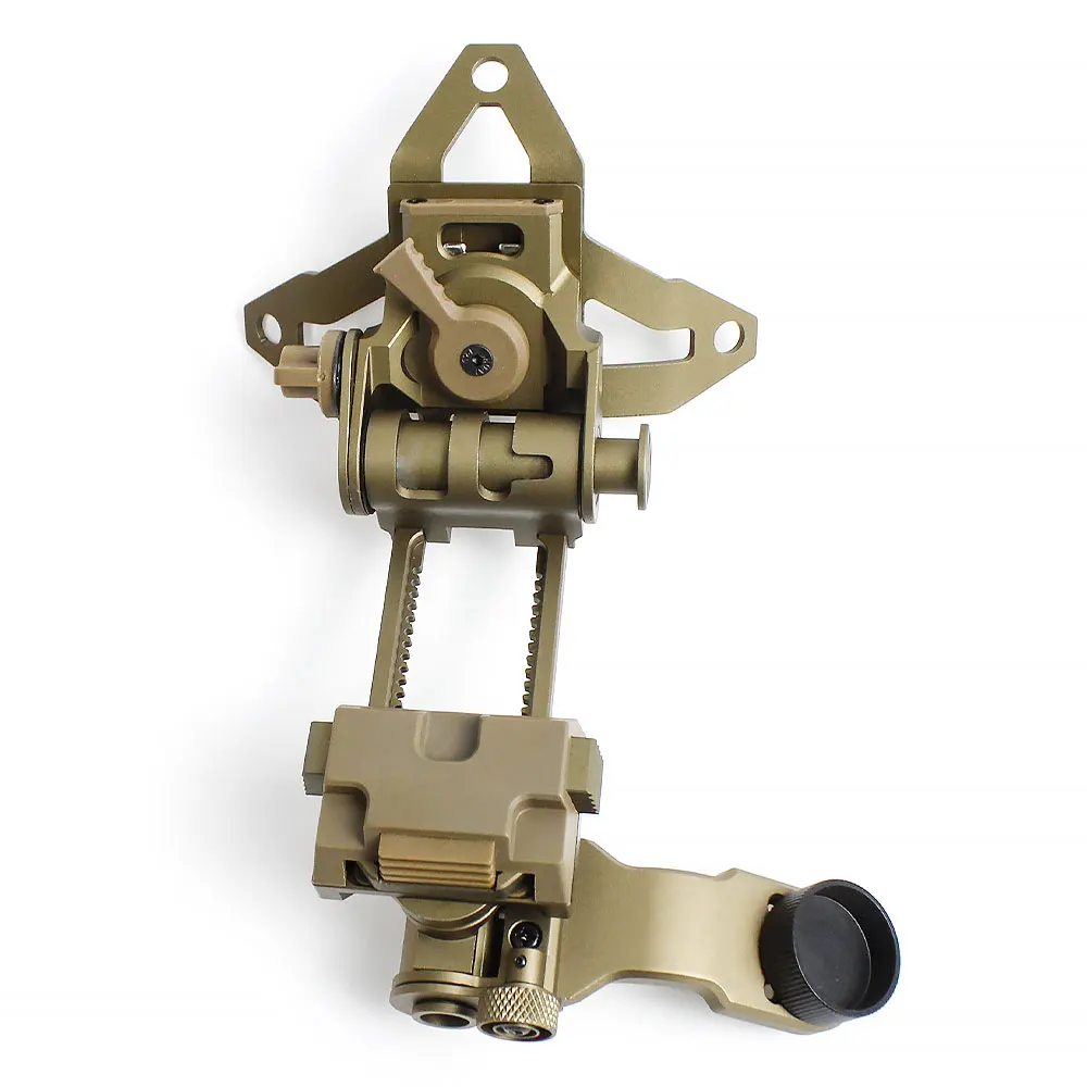 1. Este soporte para casco bloquea de forma segura el NVG en cualquier casco perforado con una configuración estándar de tres agujeros.