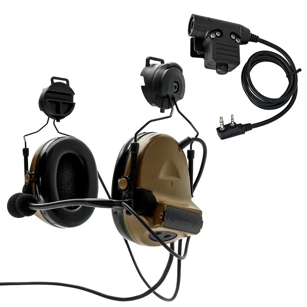 Soporte para casco versión COMTA II auriculares tácticos con riel de arco protección auditiva auriculares militares Airsoft con táctico U94 Ptt