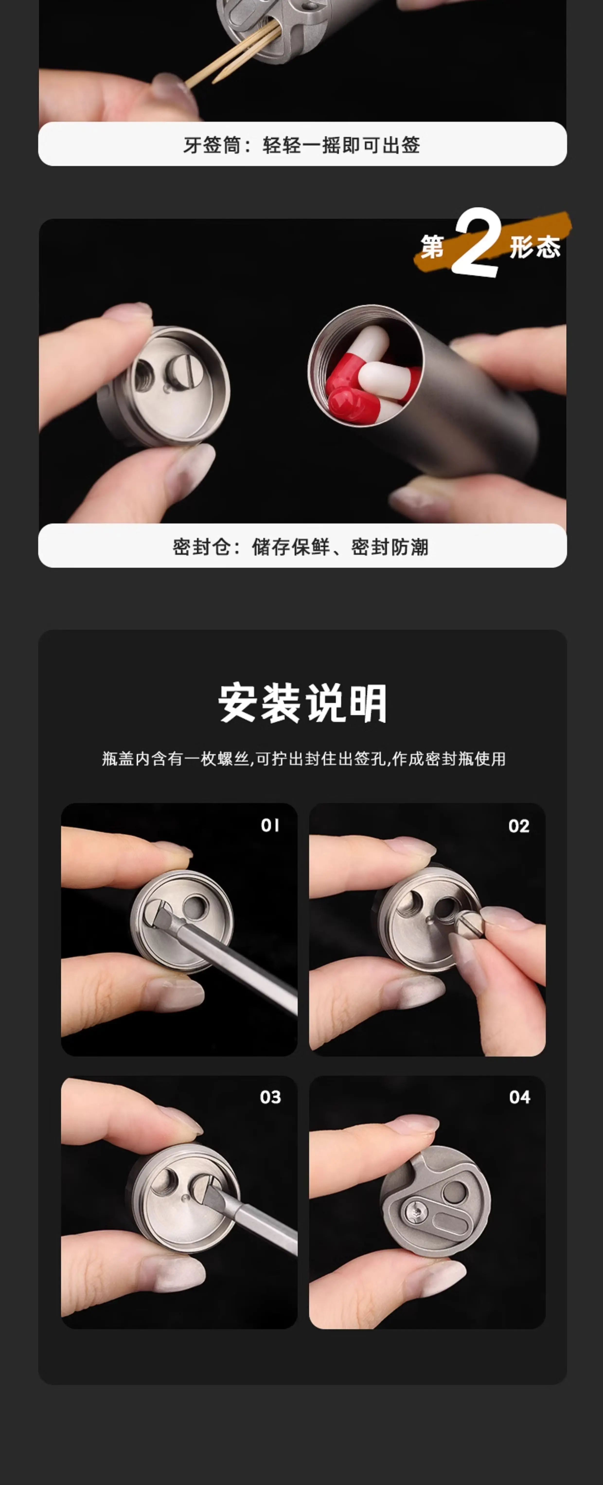 Soporte dentado de aleación de titanio, contenedor portátil con contenedor sellado, caja de medicina, resistente al agua, resistente a la corrosión de alta gama