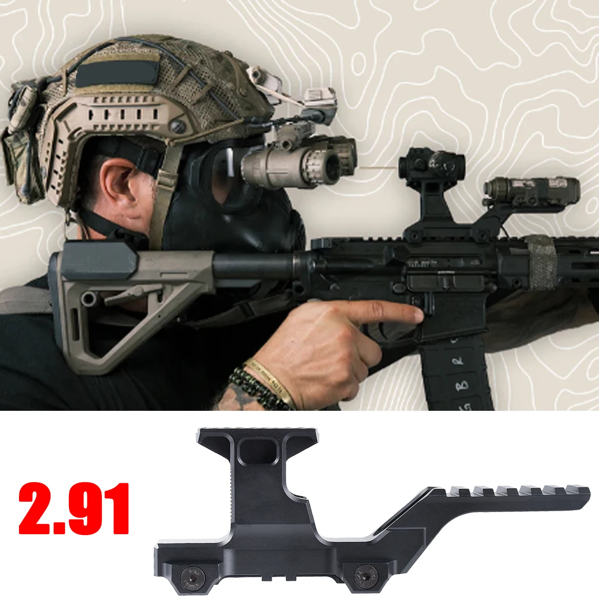 * Montura óptica dual para ofrecer una línea central óptica de 2.91” para una identificación más rápida del objetivo, independientemente de las obstrucciones del equipo, como auriculares EarPro/Comms, máscaras de gas/CBRN y gafas de visión nocturna.