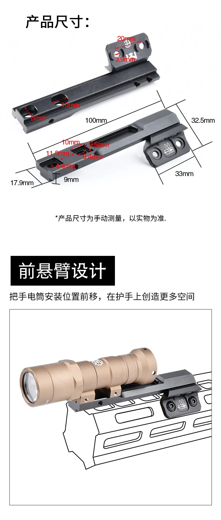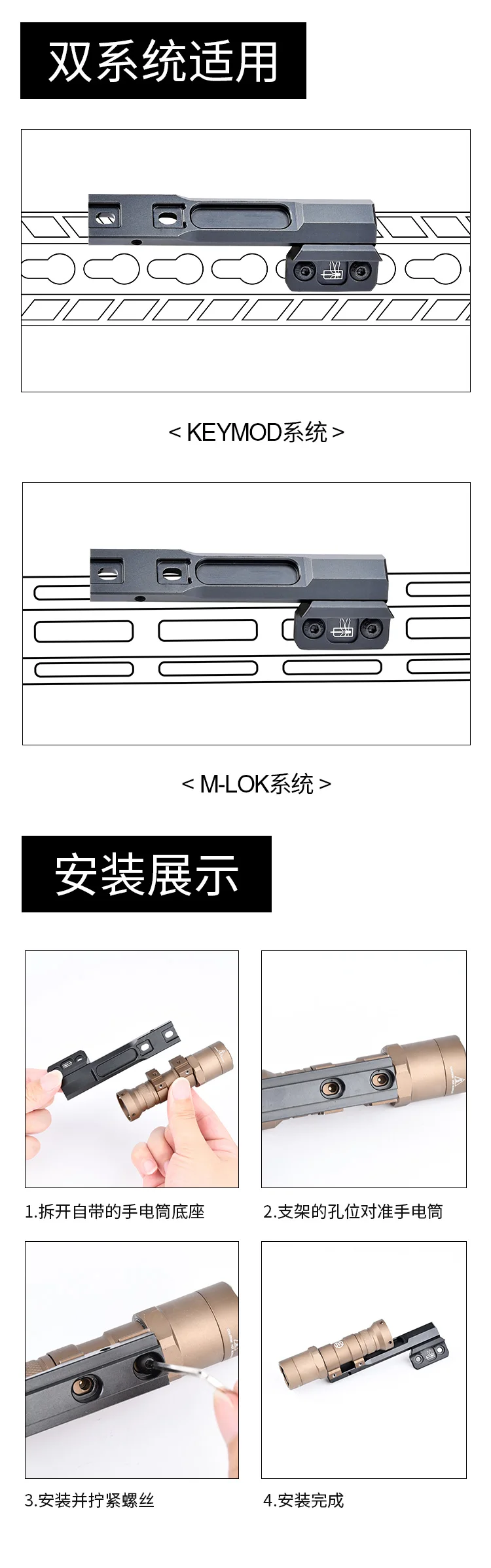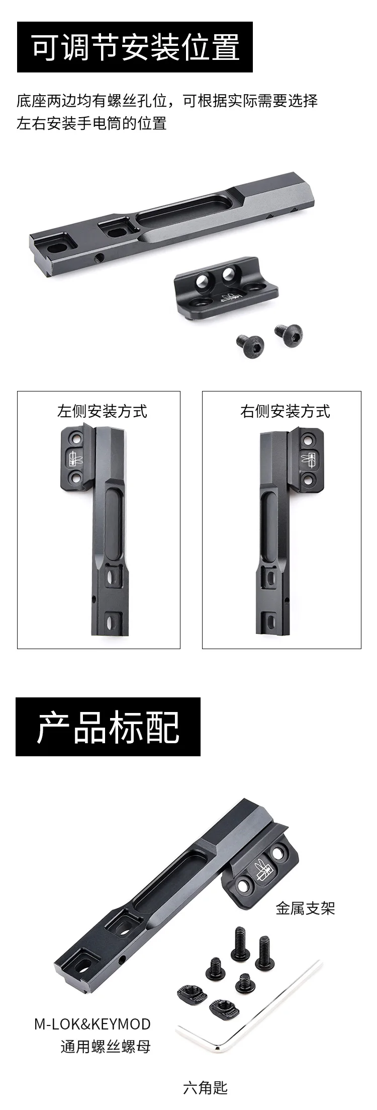 Soporte en línea para Mlok Keymod, protector de manos táctico Surefire M300 M600, linterna, arma, Scout, Base de montaje