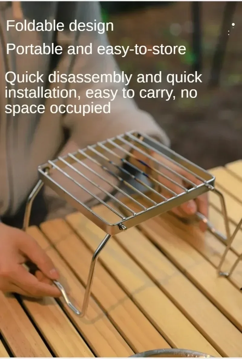 Soporte de estufa de acero inoxidable para exteriores, Mini estante plegable portátil para barbacoa, soporte para olla, bandeja para hornear
