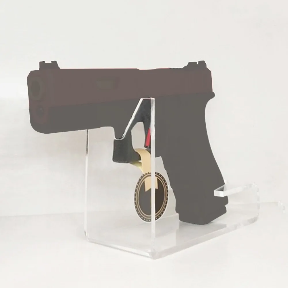 3.Our toy pistol stand is about 3 millimeters thick and durable. Using our clear stand to display handgun toys will not cause sight obstruction.