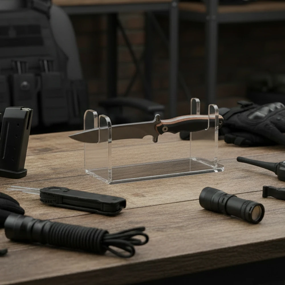 Soporte de exhibición de cuchillos acrílico, soporte de estante de exhibición de un solo cuchillo, estante de almacenamiento de cuchillos de combate para protección de colección de cuchillas