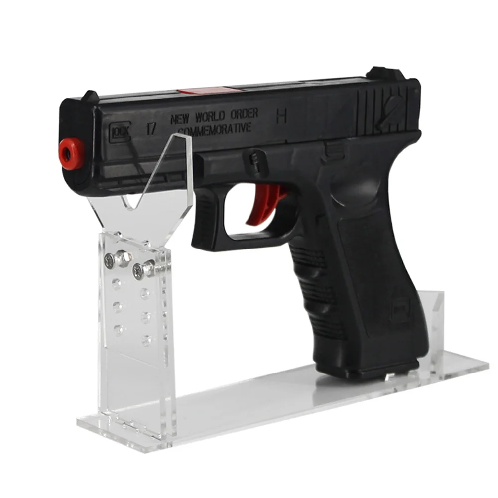 Nuevo estilo de soporte de pistola de exhibición soporte de pistola ajustable claro acrílico corto estante de almacenamiento de pistola