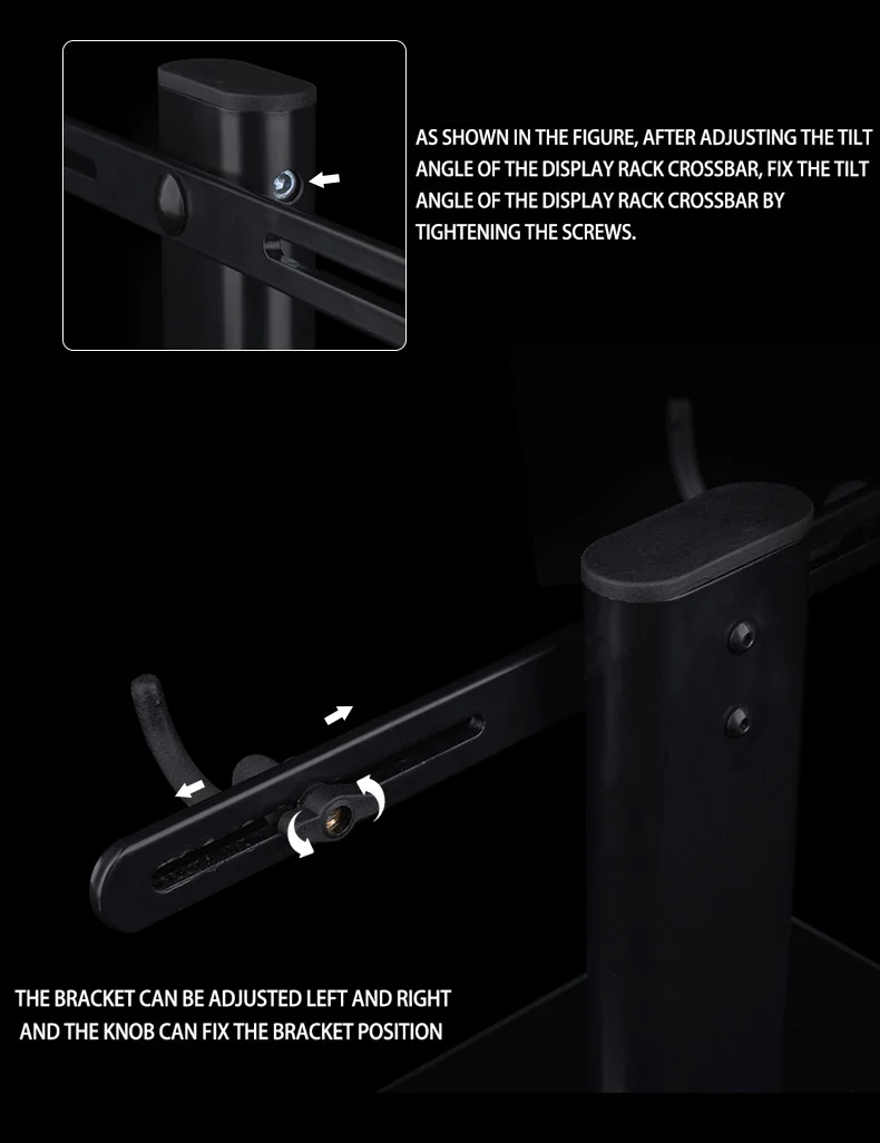 El soporte de exhibición se puede ajustar libremente y está equipado con 5 soportes, que se pueden adaptar a diferentes equipos.