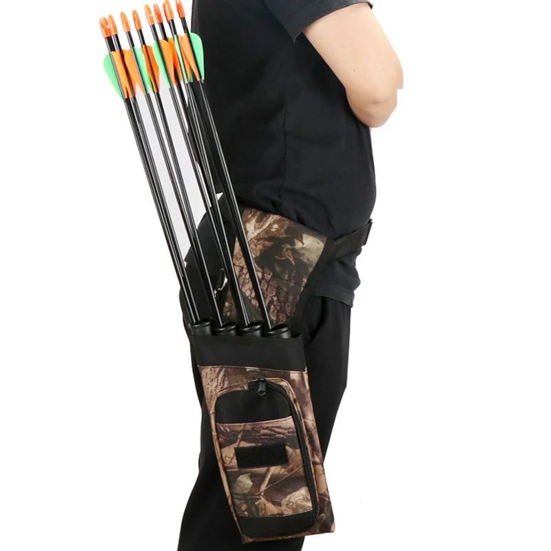 Soporte de flecha inversa de cuatro tubos para tiro con arco, aljaba de cadera lateral para colgar en la cintura con bolsa de almacenamiento de cinturón ajustable para caza recurvo al aire libre