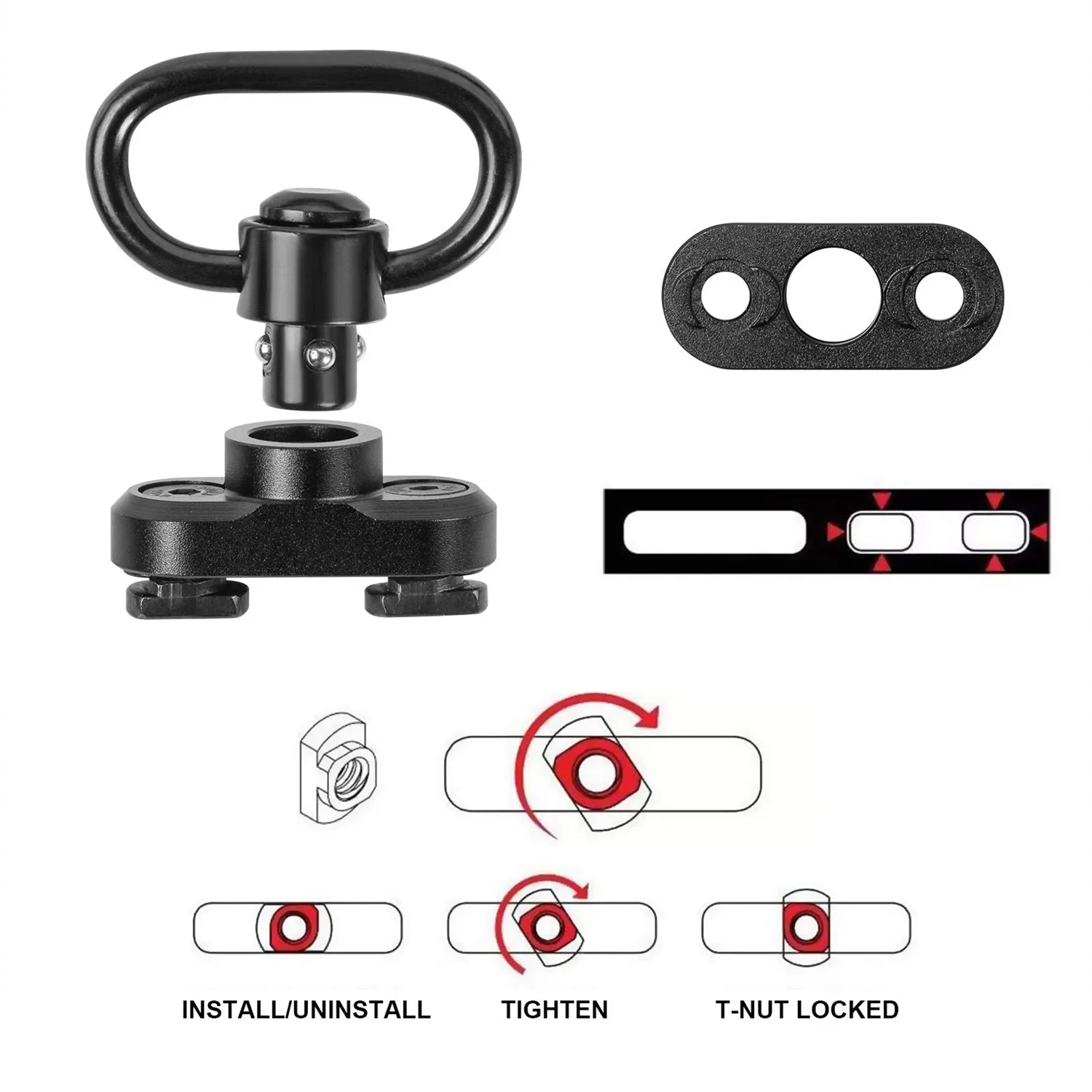 Soporte giratorio QD Sling, giratorios de eslinga de alta resistencia de 1,25" para soporte giratorio de eslinga tradicional y de dos puntos
