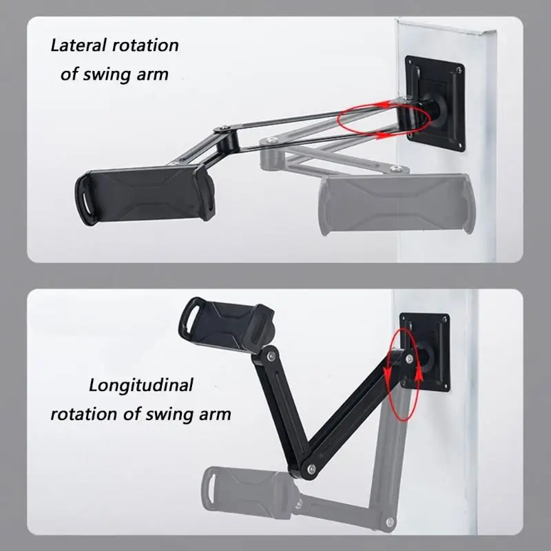 Con un soporte de montaje en pared plegable y brazos recubiertos de plástico desmontables, este soporte para teléfono/tableta que ahorra espacio permite una instalación horizontal/vertical y un fácil ajuste de inclinación de la herramienta para ángulos de visión óptimos.