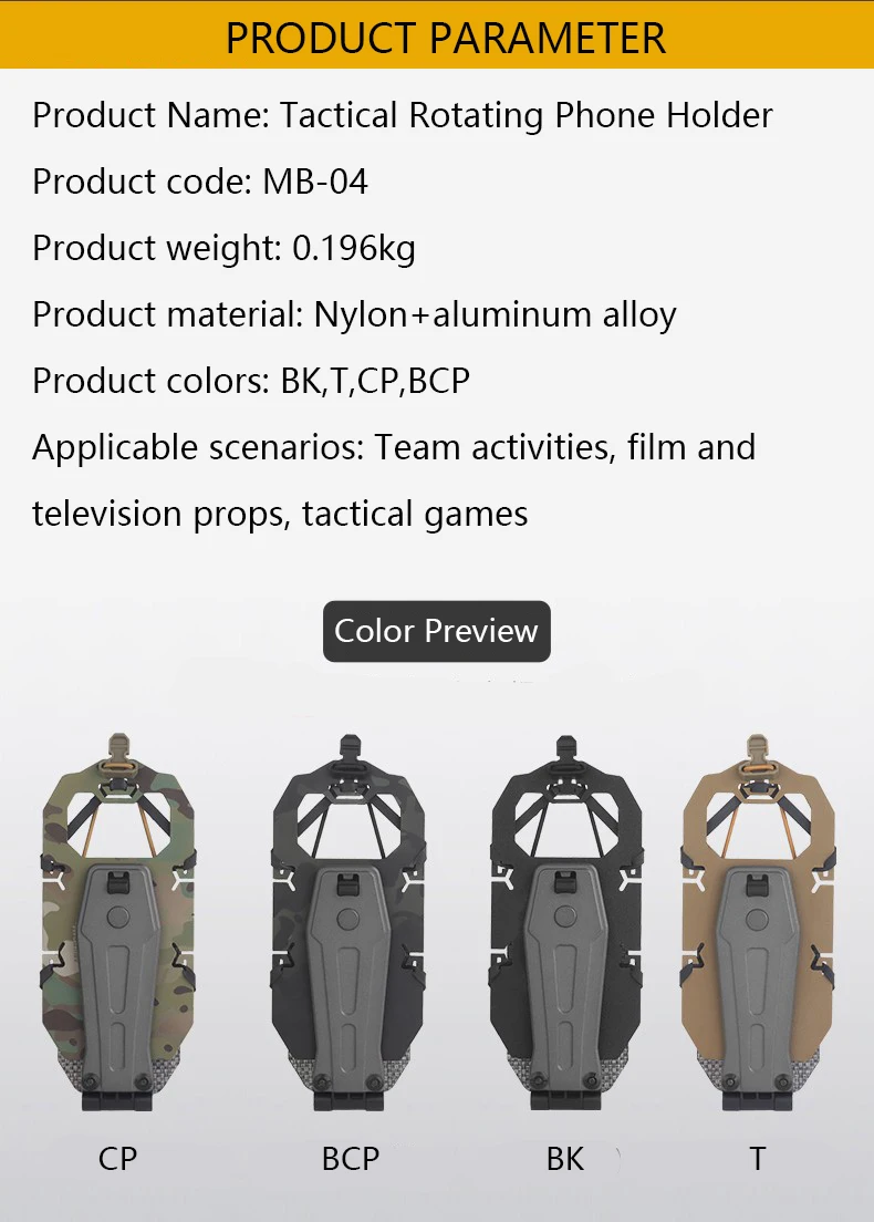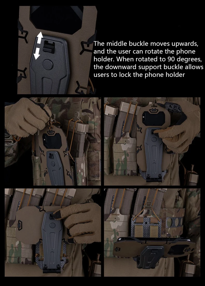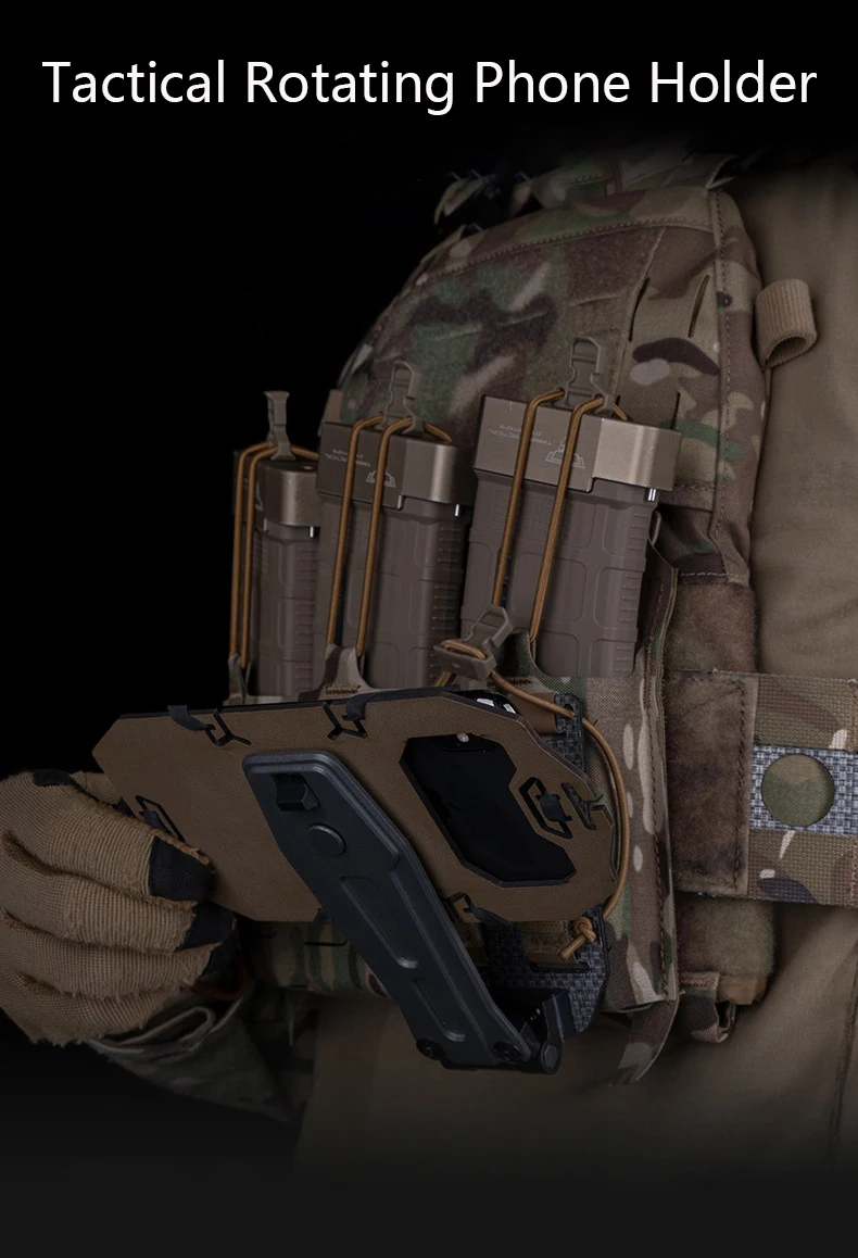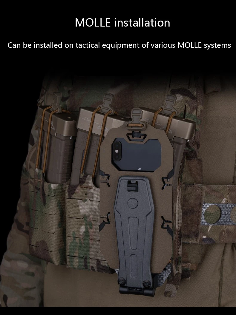 Soporte giratorio táctico para teléfono, diseño plegable, instalación MOLLE, elasticidad ajustable, fácil de usar
