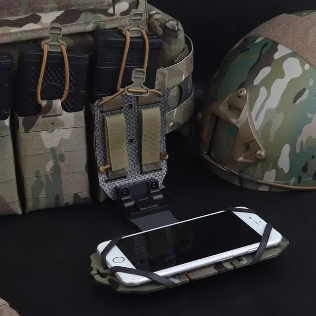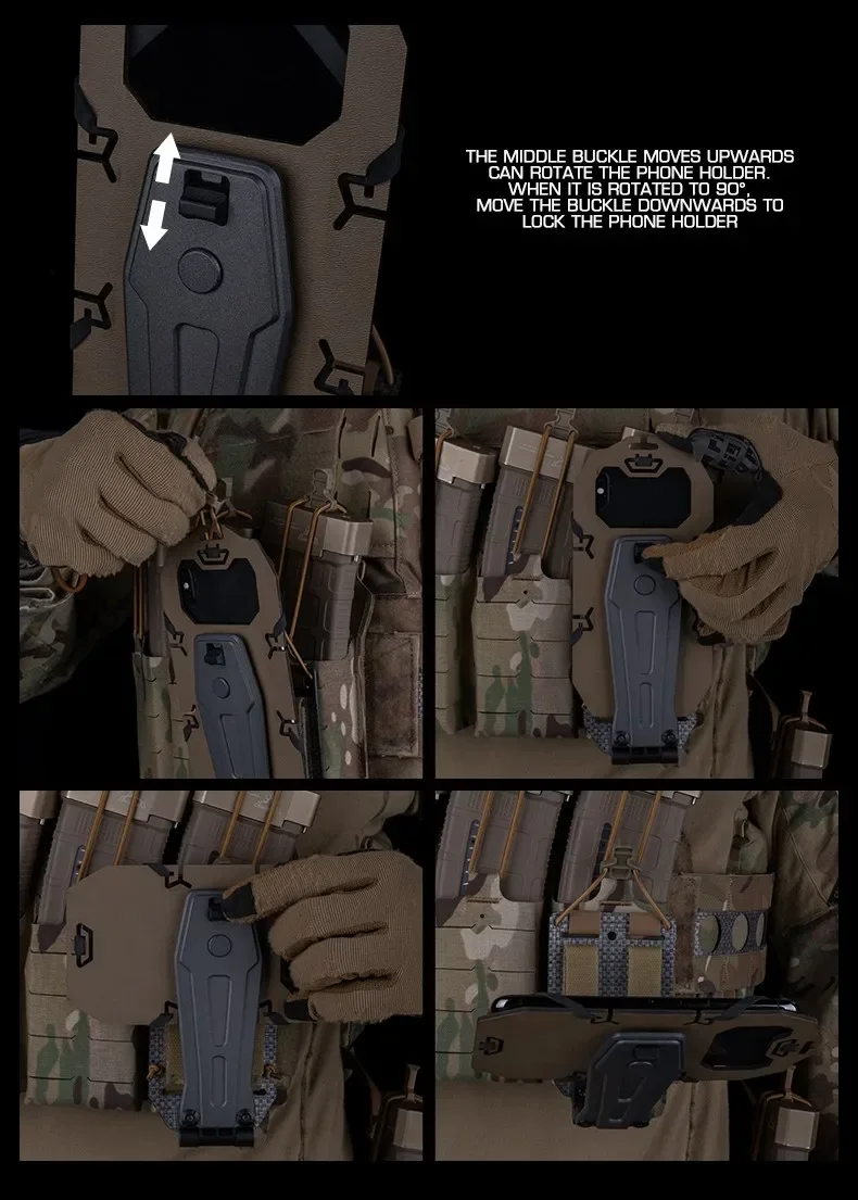 Soporte giratorio táctico para teléfono, tablero cardiotónico trasero táctico, adecuado para accesorios de soporte Molle, multiherramienta de Camping