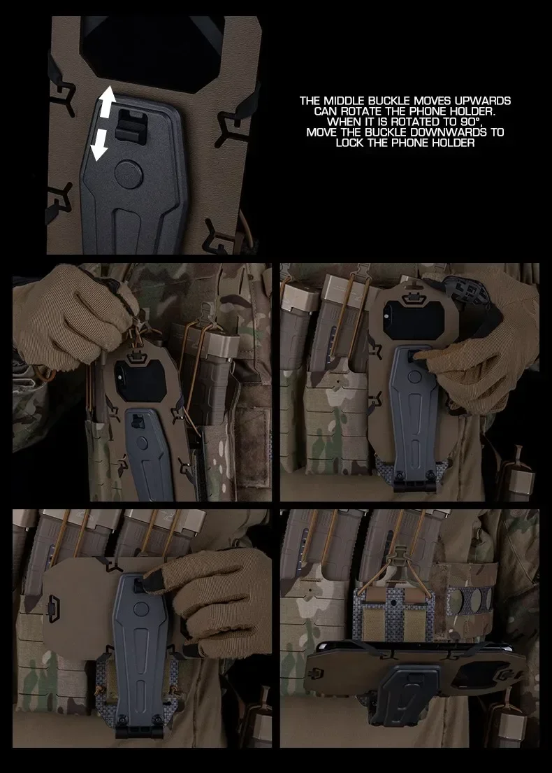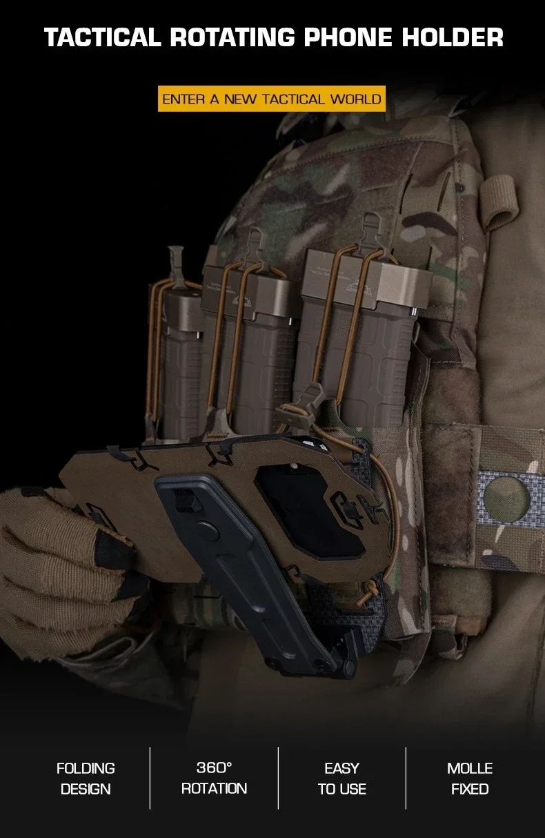 Soporte giratorio táctico para teléfono, tablero táctico para el pecho trasero, adecuado para accesorios de soporte Molle