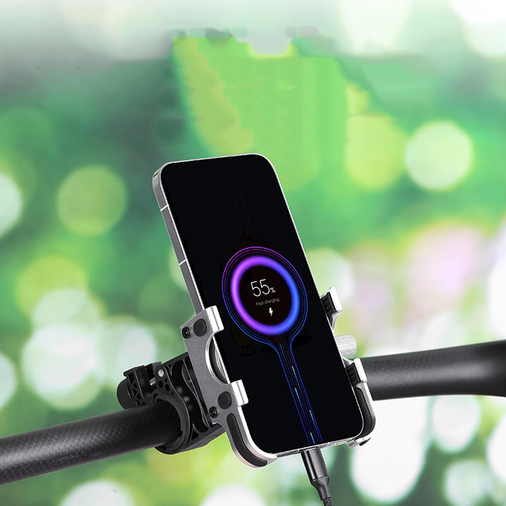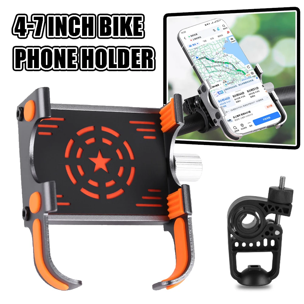 Soporte giratorio para teléfono de bicicleta de 4-7 pulgadas, soporte de navegación, soporte fijo, soporte de aleación para manillar con amortiguador para todoterreno