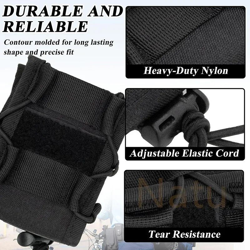 La bolsa para esposas se fija mediante una banda elástica que sujeta firmemente las esposas en su lugar, sin necesidad de preocuparse de que se caigan durante el movimiento.