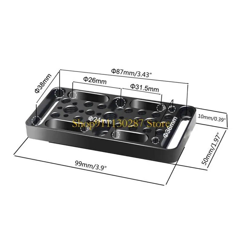 Fabricado en aleación de aluminio integrado con múltiples orificios roscados de 1/4 y 3/8 y diseñado con orificios de posicionamiento Alai.Hay ranuras circulares en la cintura en direcciones horizontal y vertical.
