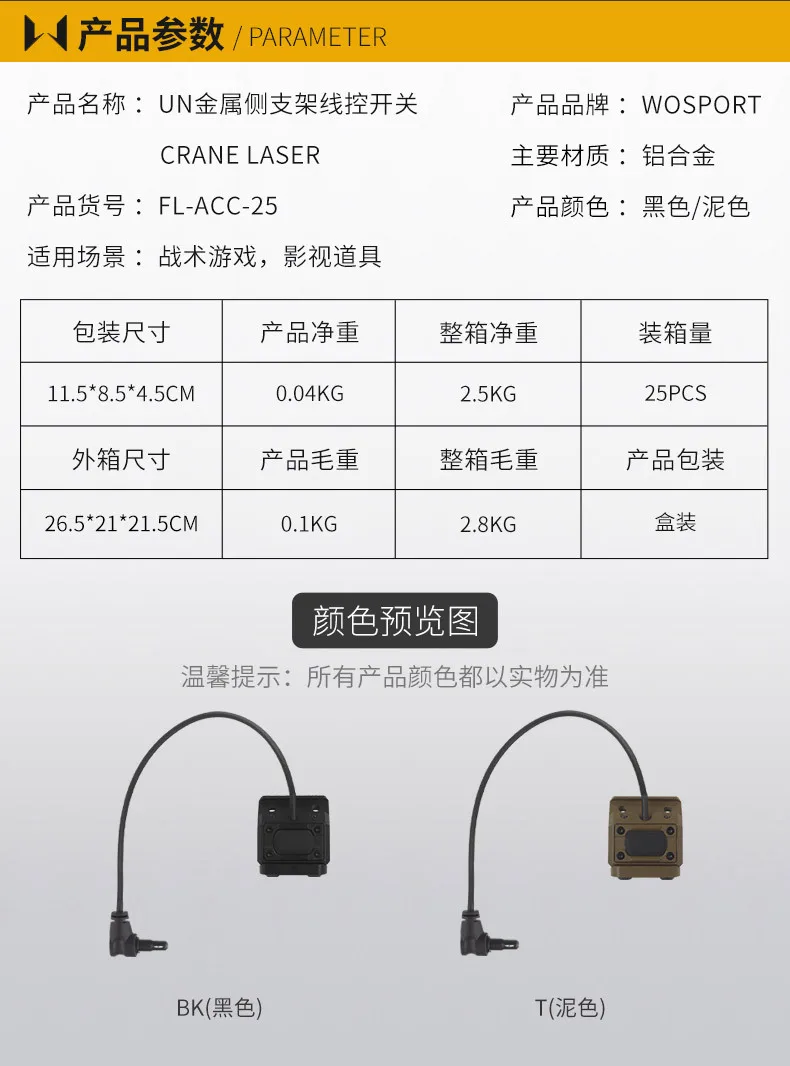 Soporte lateral de metal táctico UN/interruptor controlado por cable de una sola línea, láser de grúa, SF, 2,5