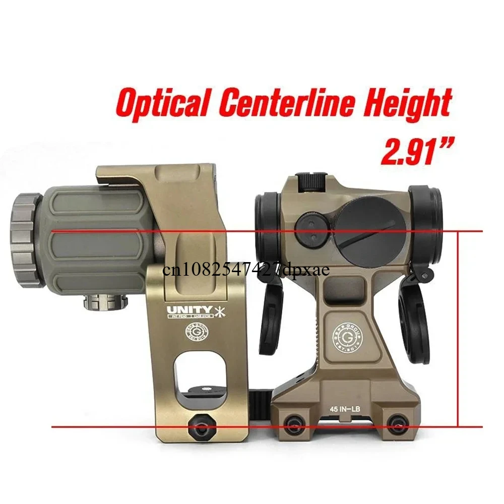 La innovadora tecnología Flip-to-Center de Tactical, el soporte de 30 mm (Flip-to-Center) de 2,91 FTC se puede combinar con el sistema de montaje para elevar una lupa de 30 mm a una altura de 2,91 pulgadas.